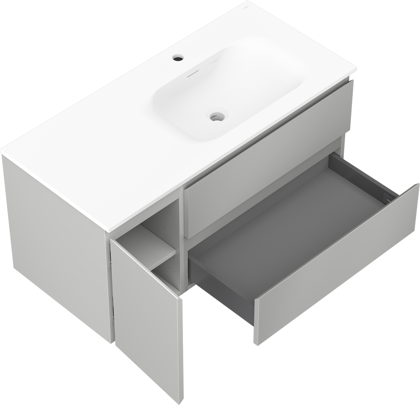 Mexen Orio 100 cm vannas istabas skapītis ar labo izlietni Vela, 2S, 1D, pelēks matēts/balts matēts
