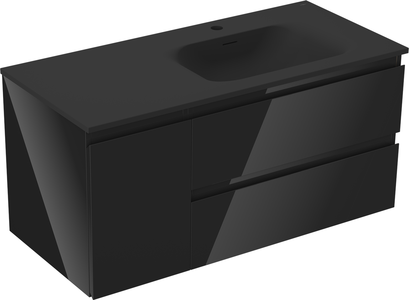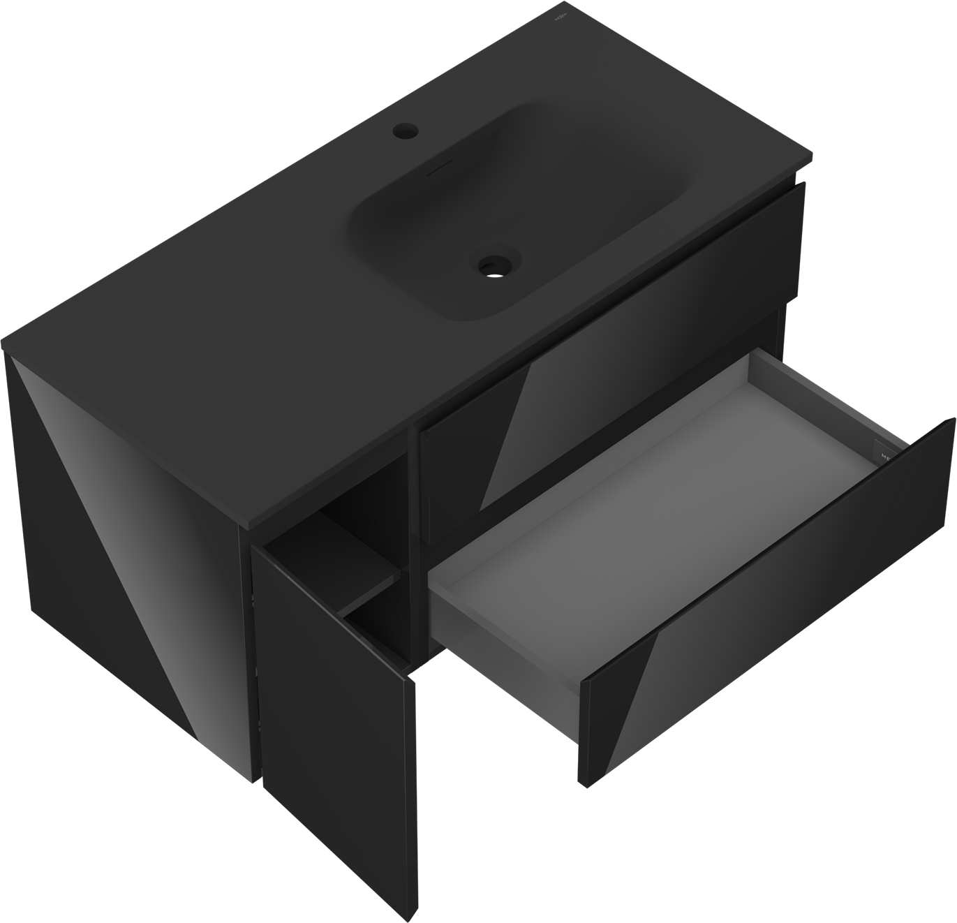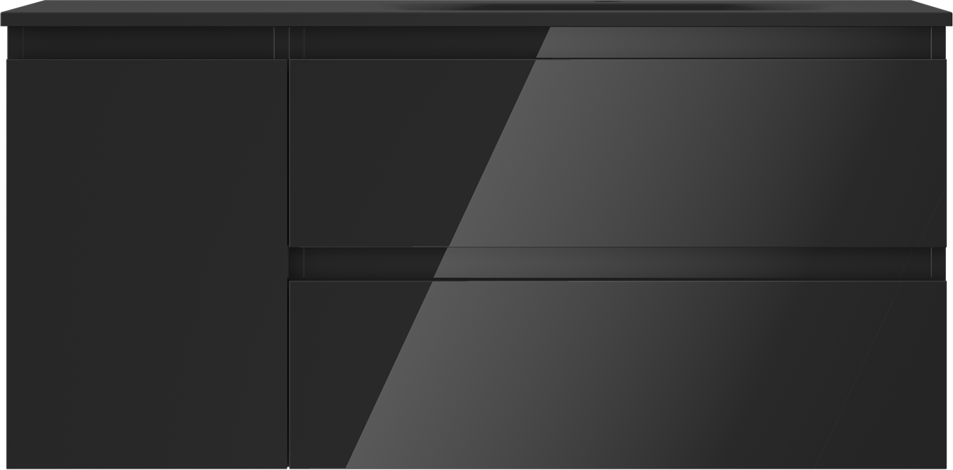 Mexen Orio 100 cm vannas istabas skapītis ar izlietni Vela labais, 2S, 1D, melns spīdums/melns matēts