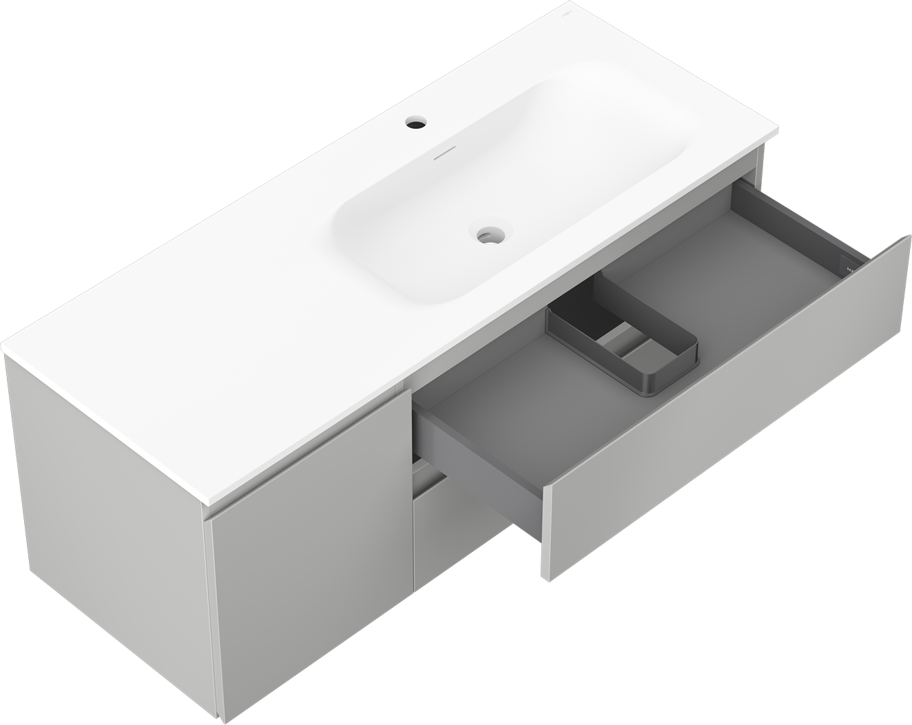 Izgriezums atvilktnē ir veidots tā, lai tajā varētu ietilpt sifons, kas ir nepieciešams izlietņu uzstādīšanā. Pateicoties tam, mēbele var tikt pilnībā funkcionāli uzstādīta, neatstājot ievērojamu vietu atvilktnē instalācijai.