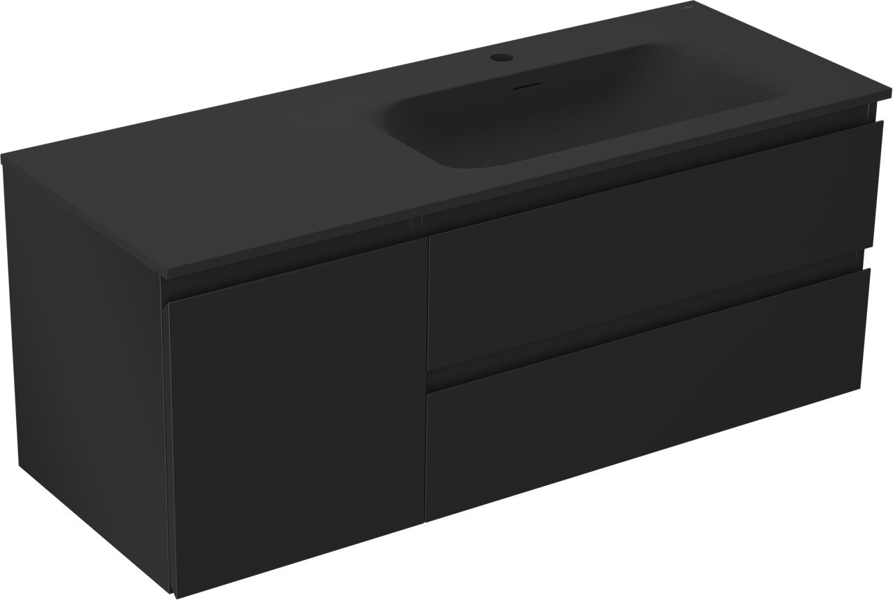 Mexen Orio vannas istabas skapis 120 cm ar izlietni Vela pa labi, 2S, 1D, melns matēts - 91A13-12047-3-BBFFF71-W23P71