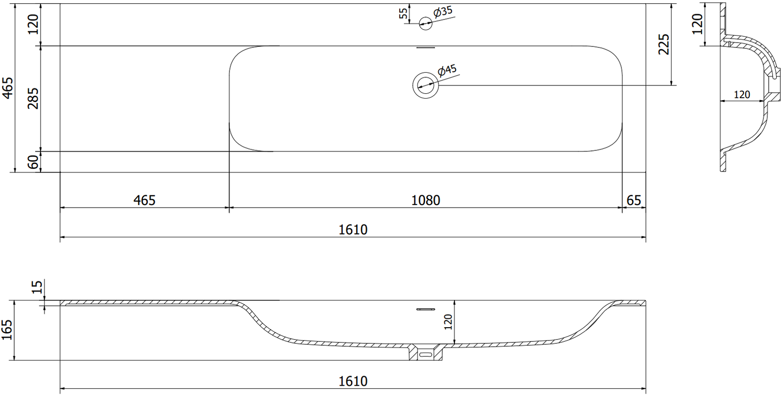 Izgriezums atvilktnē ir veidots tā, lai tajā varētu ietilpt sifons, kas ir nepieciešams izlietņu uzstādīšanā. Pateicoties tam, mēbele var tikt pilnībā funkcionāli uzstādīta, neatstājot ievērojamu vietu atvilktnē instalācijai.