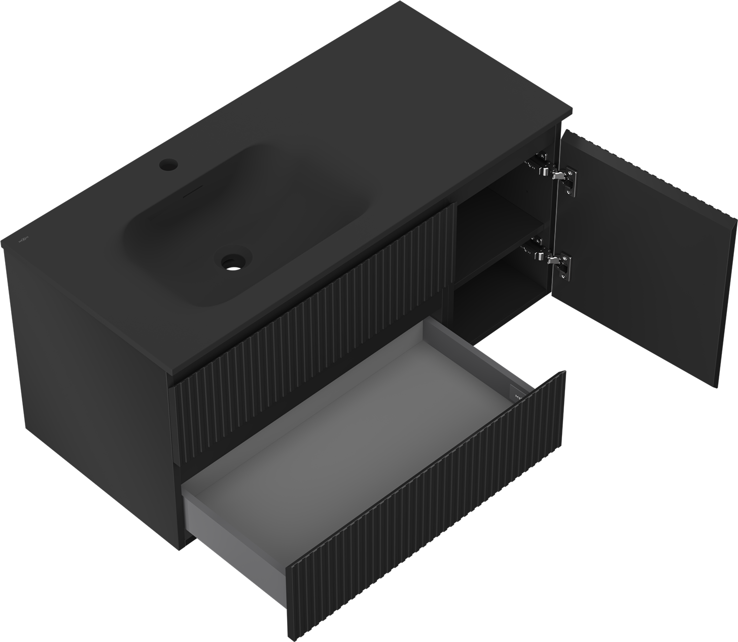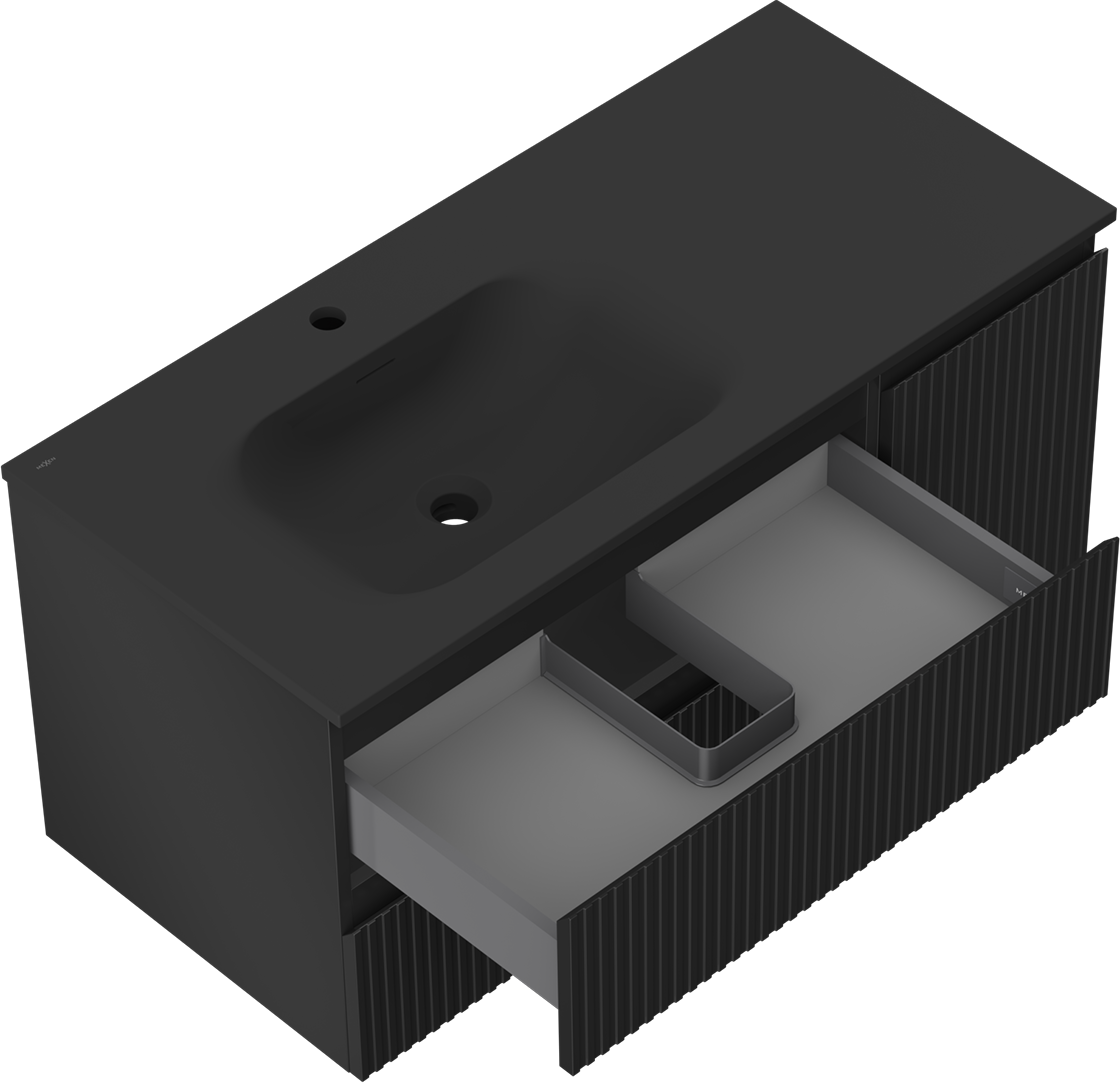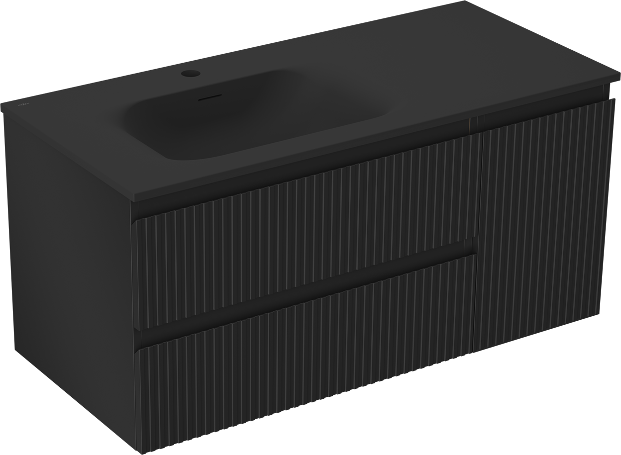Mexen Rivel 100 cm vannas istabas skapītis ar kreiso izlietni Vela, 2S, 1D, rievots, melns mats - 91A23-10047-3-BBFFF71-W23L71