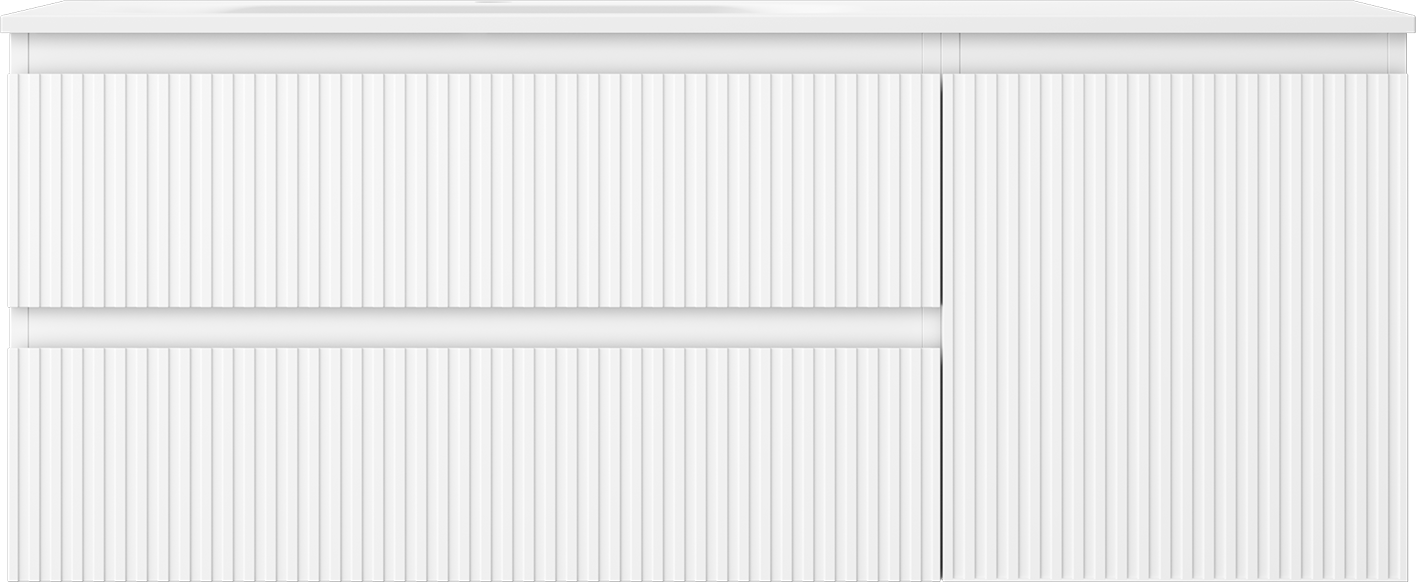 Mexen Rivel vannas istabas skapis 120 cm ar Vela kreiso izlietni, 2S, 1D, rievots, balts matēts - 91A23-12047-3-BBFFF01-W23L01