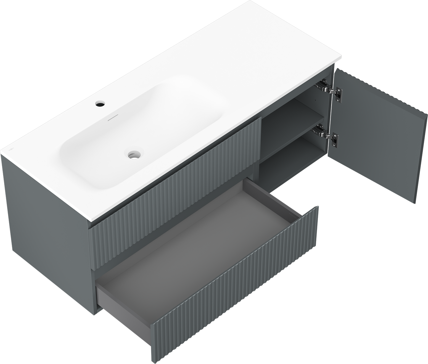 Izgriezums atvilktnē ir veidots tā, lai tajā varētu ietilpt sifons, kas ir nepieciešams izlietņu uzstādīšanā. Pateicoties tam, mēbele var tikt pilnībā funkcionāli uzstādīta, neatstājot ievērojamu vietu atvilktnē instalācijai.