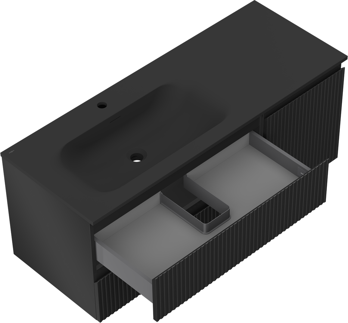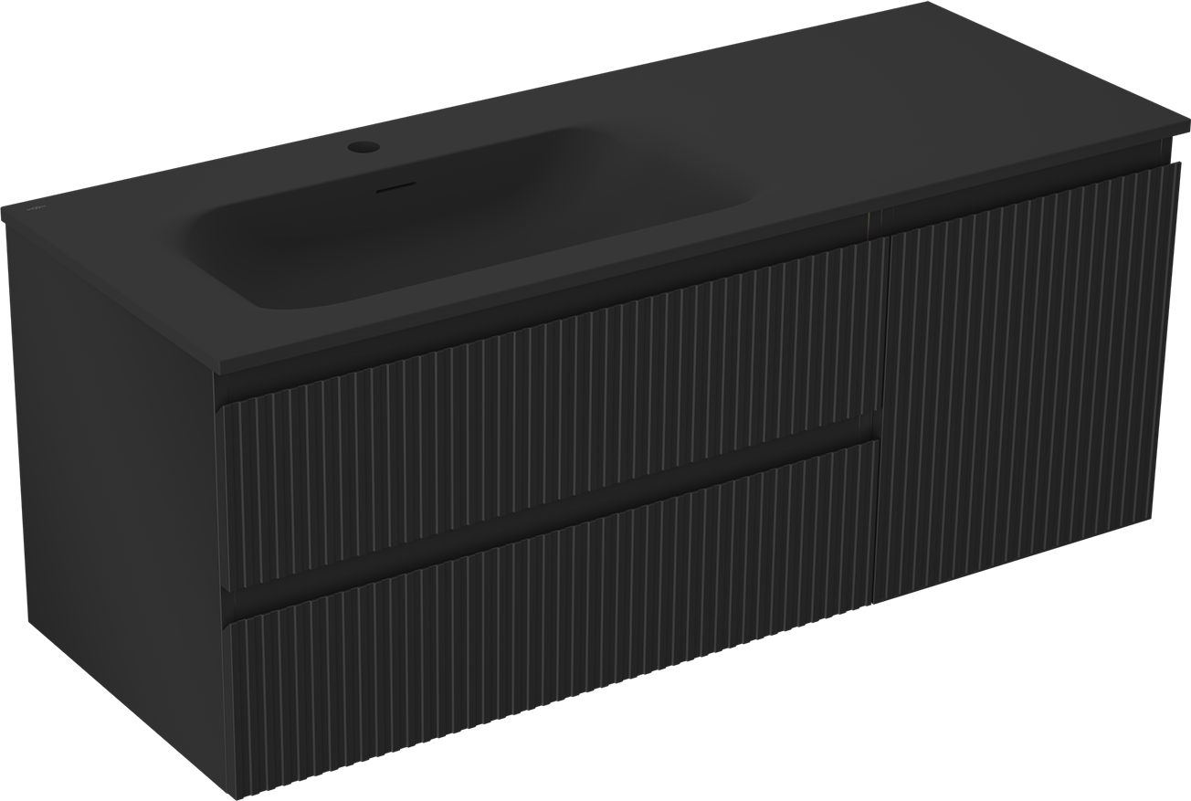 Mexen Rivel vannas istabas skapis 120 cm ar izlietni Vela kreiso, 2S, 1D, rievots, melns mats - 91A23-12047-3-BBFFF71-W23L71
