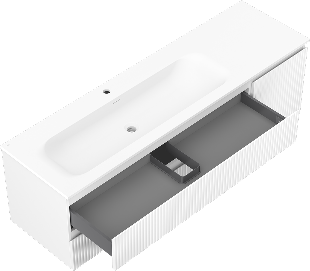 Mexen Rivel 160 cm vannas istabas skapis ar izlietni Vela kreisais, 2S, 1D, rievots, balts mats - 91A23-16047-3-BBFFF01-W23L01