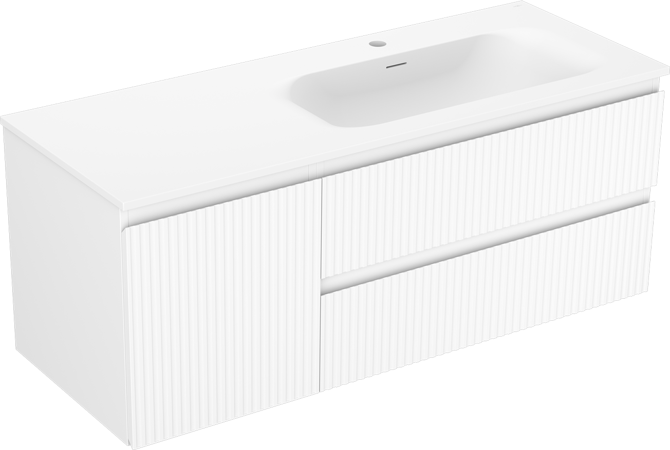 Mexen Rivel vannas istabas skapītis 120 cm ar izlietni Vela labais, 2S, 1D, rievots, balts matēts - 91A23-12047-3-BBFFF01-W23P01