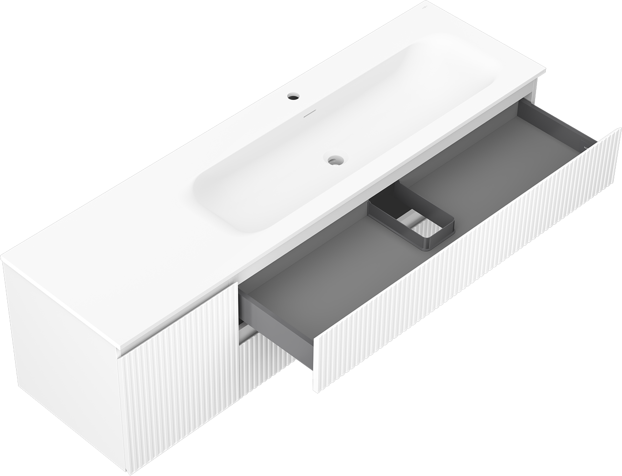 Mexen Rivel vannas istabas skapītis 160 cm ar izlietni Vela labajā pusē, 2S, 1D, rievots, balts matēts