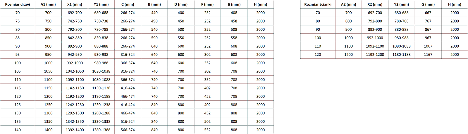 Izmērs: 80x110 cm (durvis labās 80 cm, siena 110 cm)