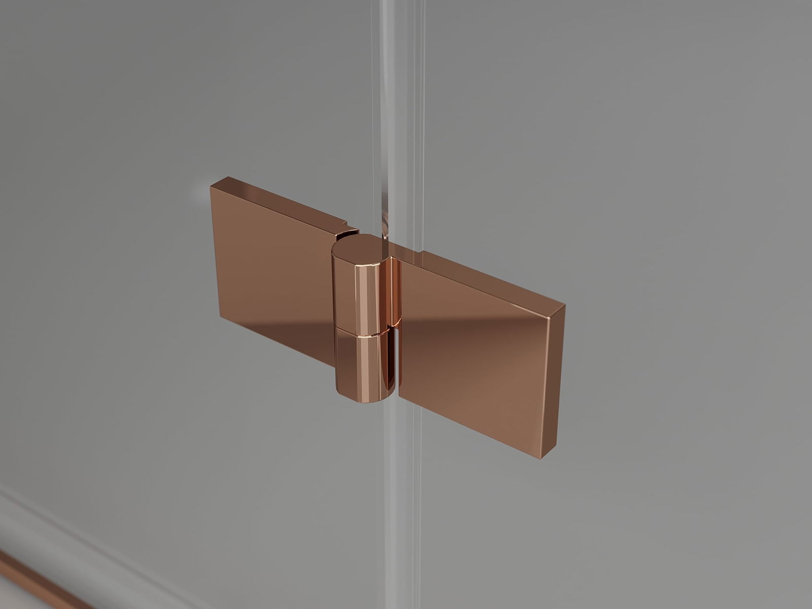 Skavas un eņģes ir izgatavotas no ļoti izturīga misiņa un papildus veido vienā līmenī esošu stikla virsmu. Tas ir lieliska izvēle, kas apvieno eleganci, izturību un modernu dizainu. Šādi risinājumi paaugstina dušas estētiku un vienlaikus atvieglo tīrības uzturēšanu.