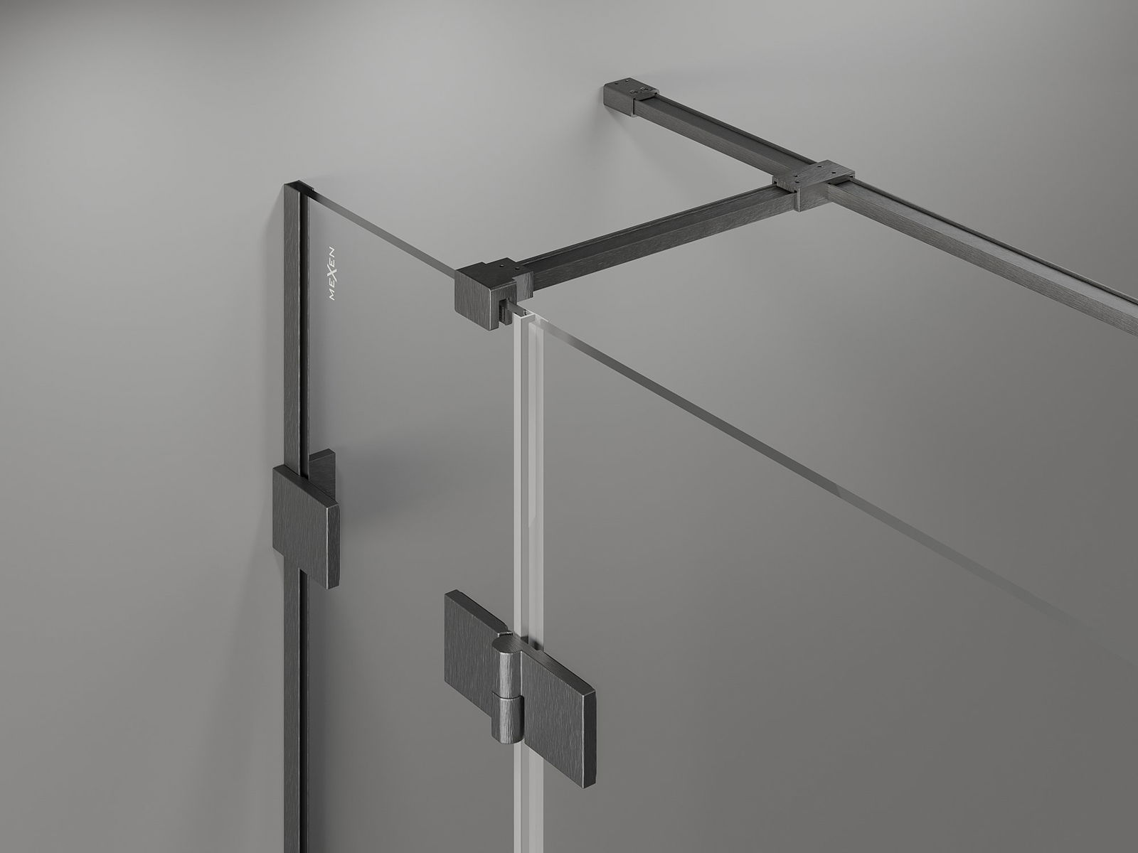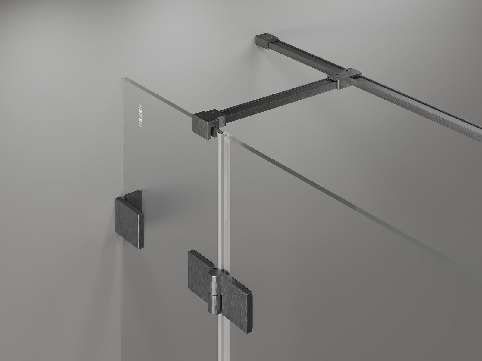 Skavas un eņģes ir izgatavotas no ļoti izturīga misiņa un papildus veido vienā līmenī esošu stikla virsmu. Tas ir lieliska izvēle, kas apvieno eleganci, izturību un modernu dizainu. Šādi risinājumi paaugstina dušas estētiku un vienlaikus atvieglo tīrības uzturēšanu.