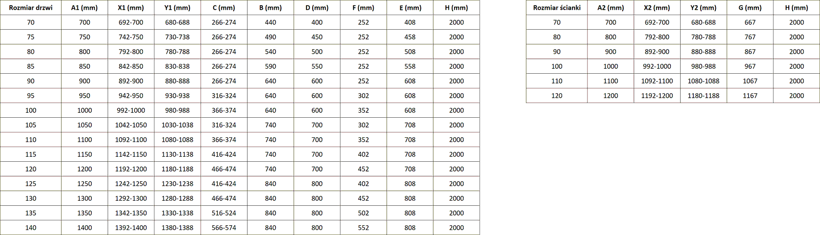 Izmērs: 90x100 cm (kreisās durvis 90 cm, siena 100 cm)