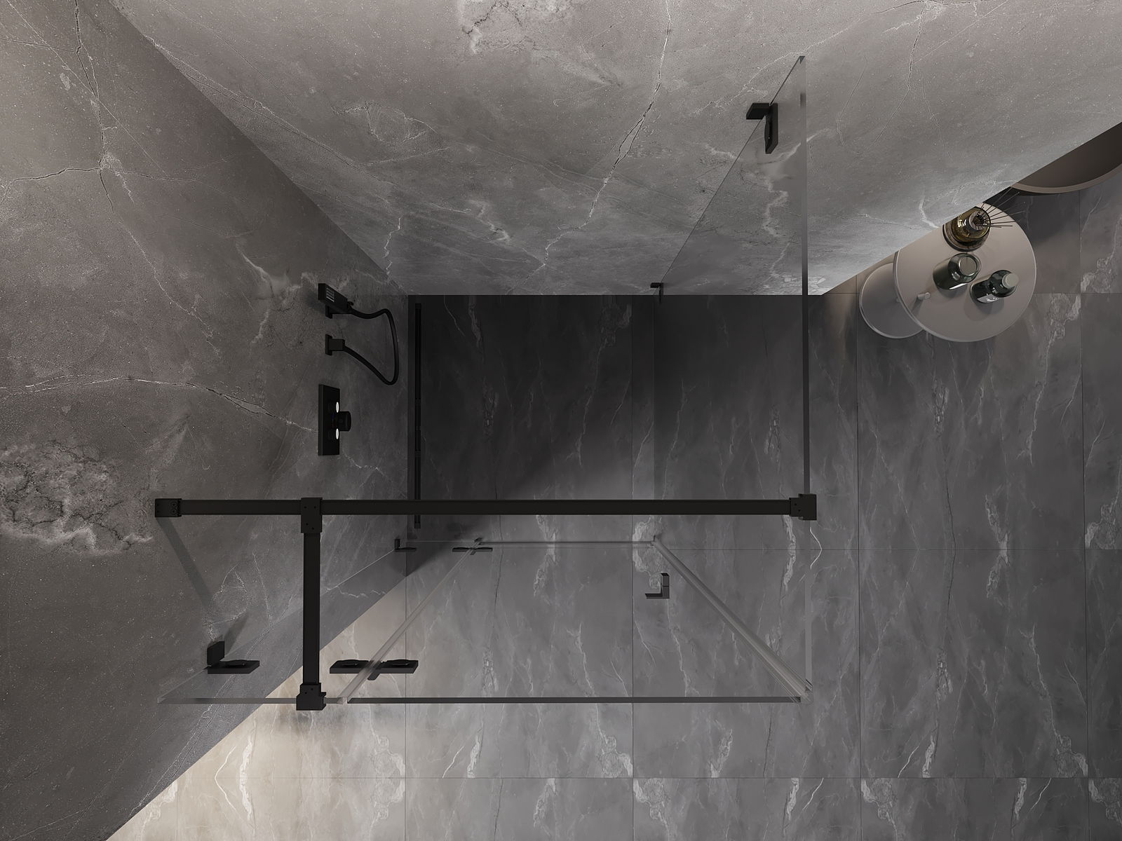 Skavas un eņģes ir izgatavotas no ļoti izturīga misiņa un papildus veido vienā līmenī esošu stikla virsmu. Tas ir lieliska izvēle, kas apvieno eleganci, izturību un modernu dizainu. Šādi risinājumi paaugstina dušas estētiku un vienlaikus atvieglo tīrības uzturēšanu.