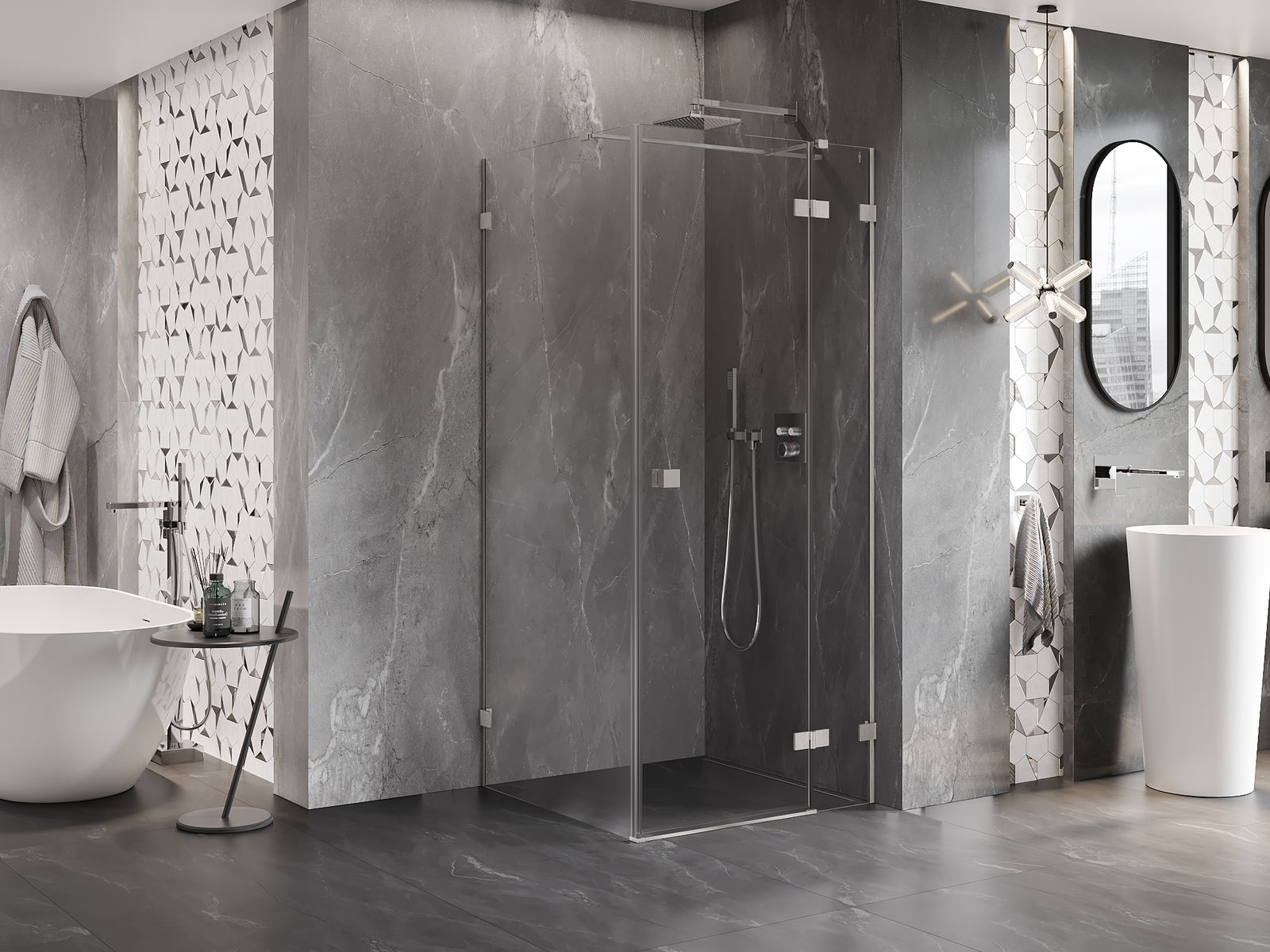 Skavas un eņģes ir izgatavotas no ļoti izturīga misiņa un papildus veido vienā līmenī esošu stikla virsmu. Tas ir lieliska izvēle, kas apvieno eleganci, izturību un modernu dizainu. Šādi risinājumi paaugstina dušas estētiku un vienlaikus atvieglo tīrības uzturēšanu.