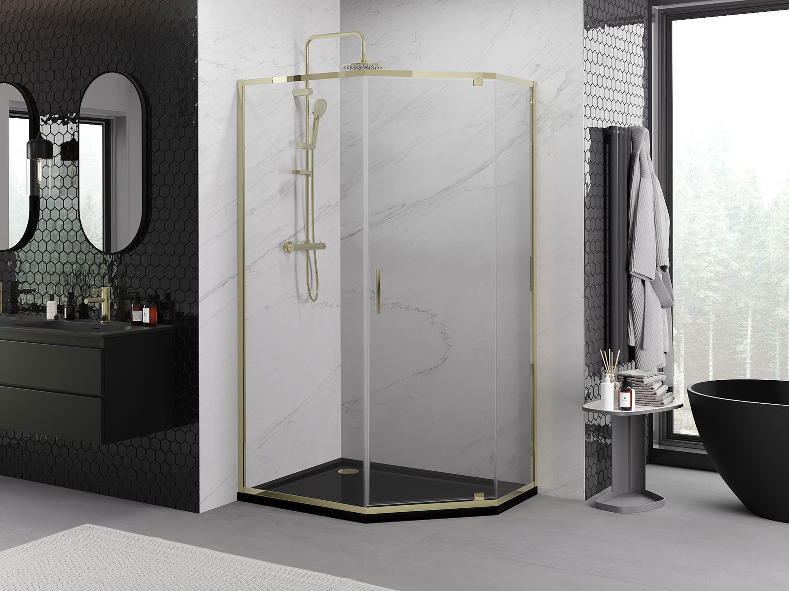 Produktu, atkarībā no vajadzībām, var uzstādīt gan uz dušas paliktņa, gan tieši uz grīdas. Universālā montāžas metode ļauj pielāgot produktu dažāda veida vannas istabām un telpas konfigurācijām.