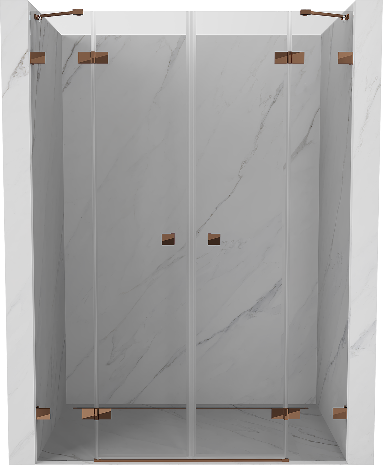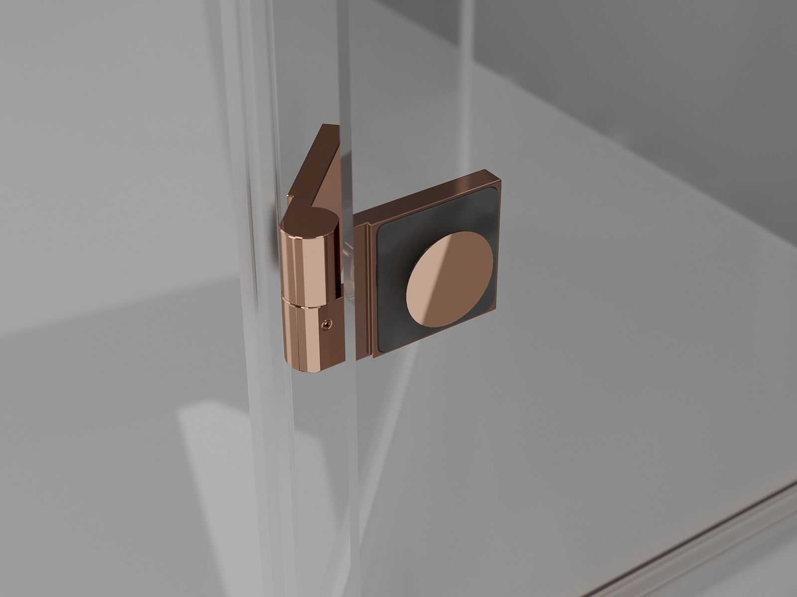 Skavas un eņģes ir izgatavotas no ļoti izturīga misiņa un papildus veido vienā līmenī esošu stikla virsmu. Tas ir lieliska izvēle, kas apvieno eleganci, izturību un modernu dizainu. Šādi risinājumi paaugstina dušas estētiku un vienlaikus atvieglo tīrības uzturēšanu.