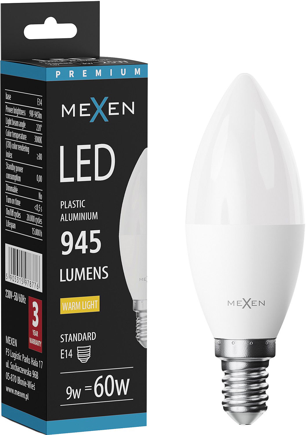 Mexen Nova LED spuldze E14, C37, 9W, Silta - 3000K, 945 lm - L102-E14-0930-01