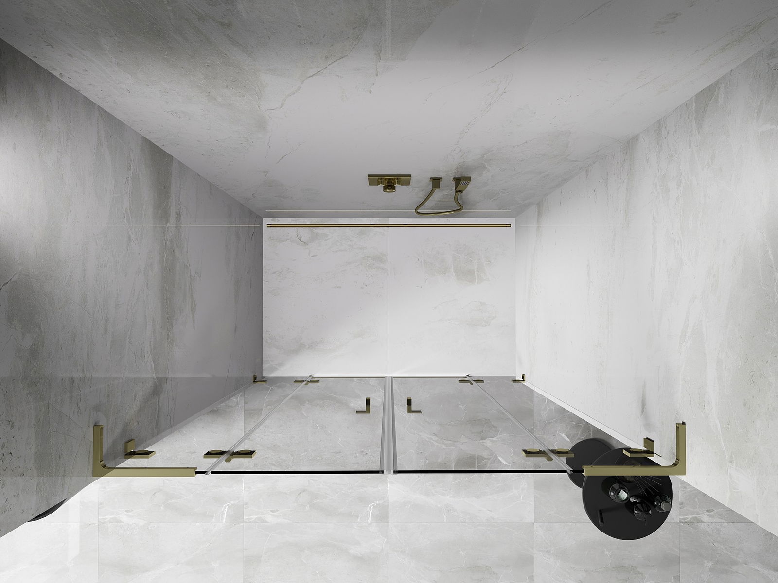 Misiņa rokturi un eņģes vienā līmenī ar stikla virsmu