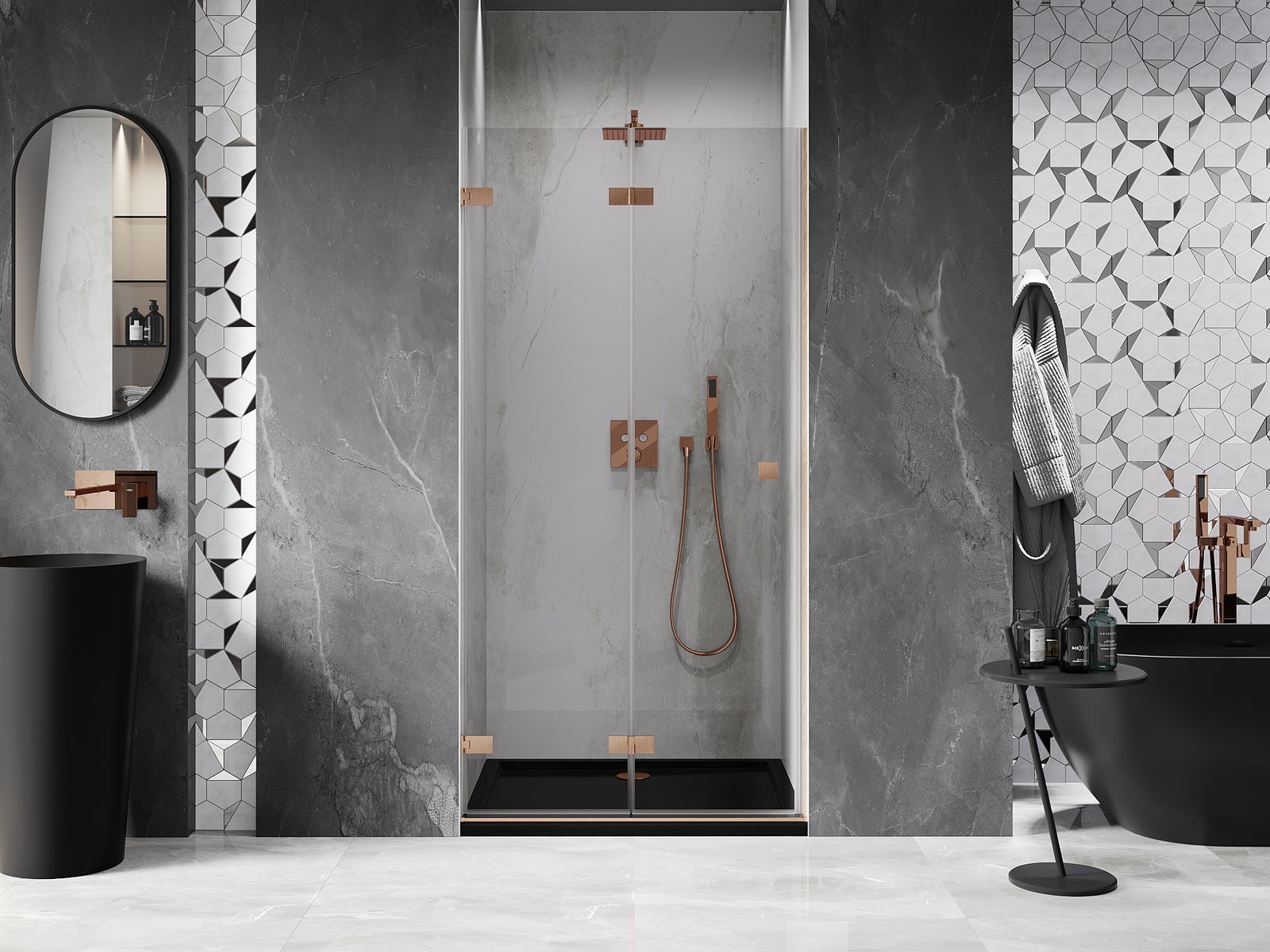 Mexen Rio dušas kabīne kvadrātveida 90 x 90 cm, caurspīdīga, melna - 860-090-090-70-00