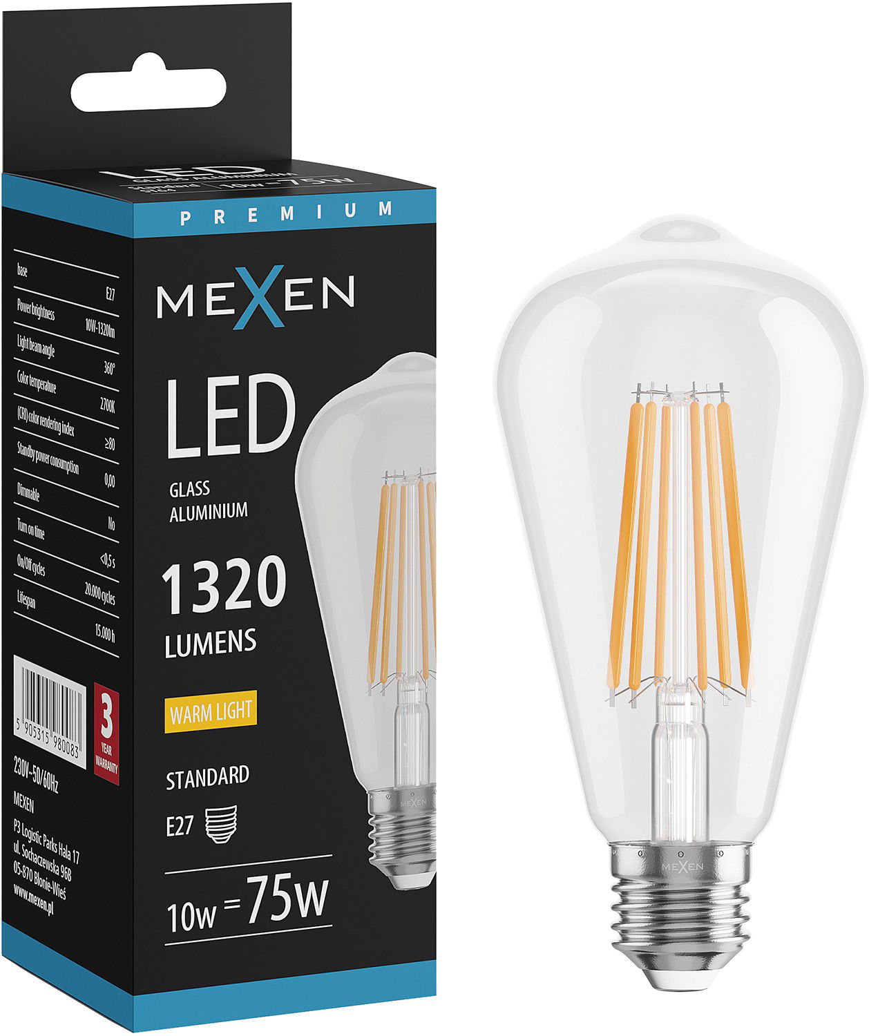 Mexen Vintis LED spuldze ar kvēldiegu E27, ST64, 10W, Silta - 2700K, 1320 lm, caurspīdīga - L152-E27-1027-00