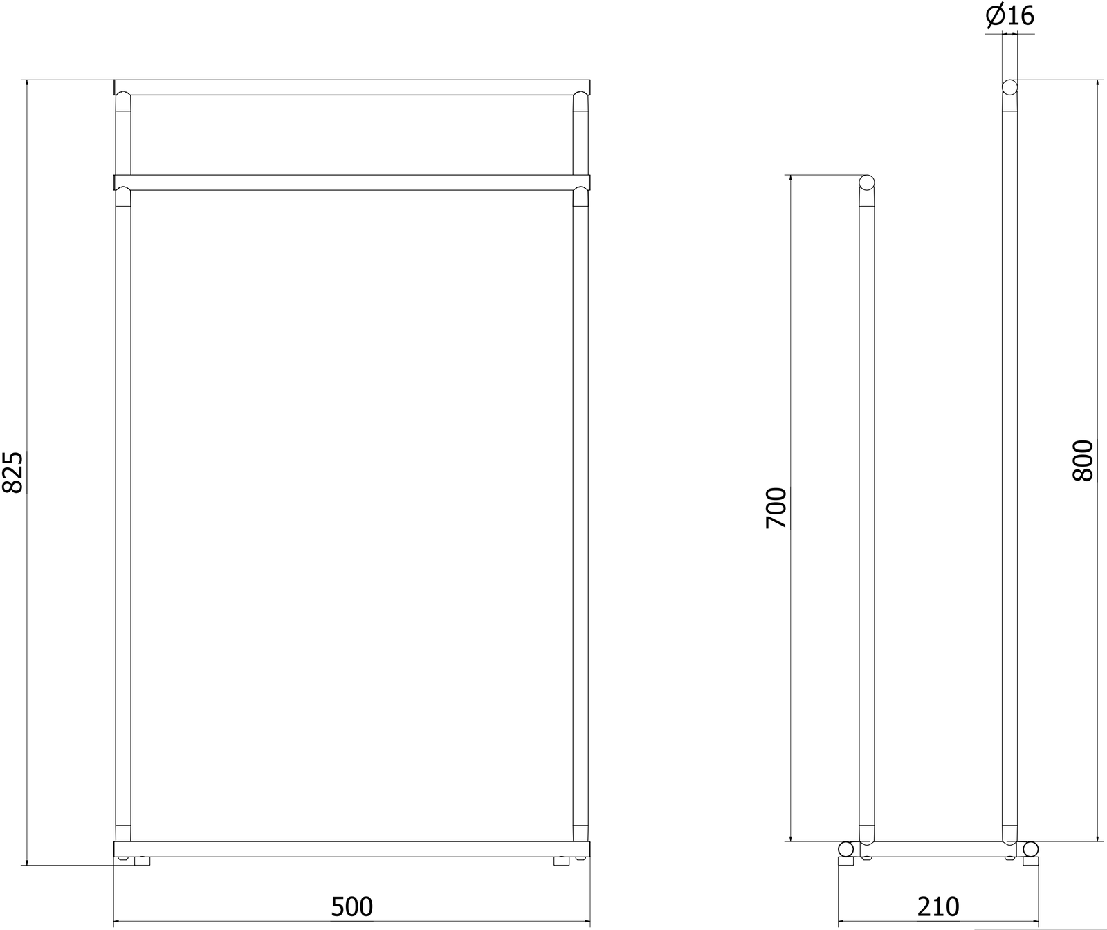 2 dvieļu stieņi dažādos augstumos