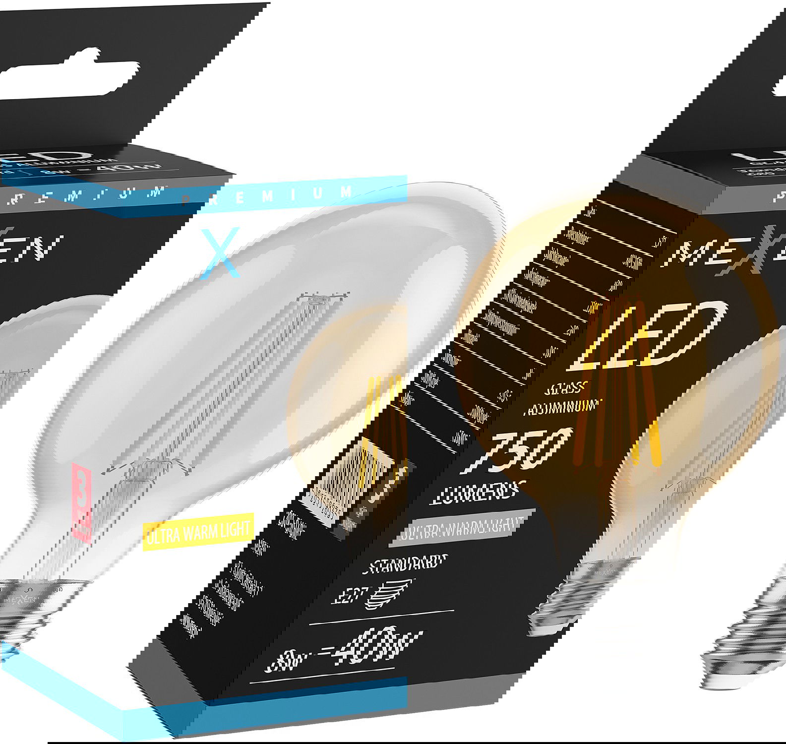Mexen Vintis LED filamenta spuldze E27, G80, 8W, Silta - 2200K, 750 lm, dzintara - L155-E27-0822-50