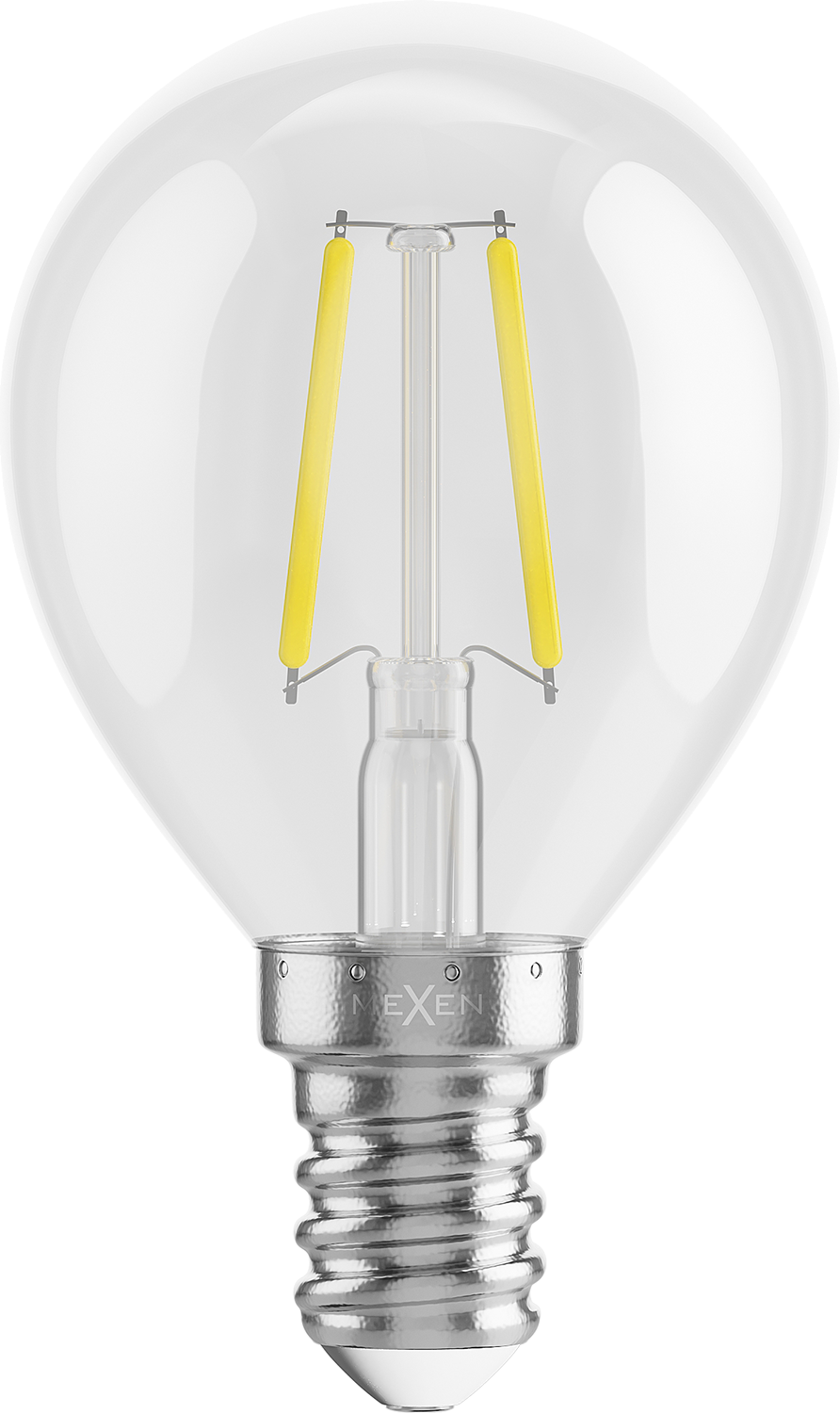 Mexen Vintis Filamenta LED spuldze E14, G45, 2W, Neitrāla - 4000K, 240 lm, caurspīdīga - L156-E14-0240-00