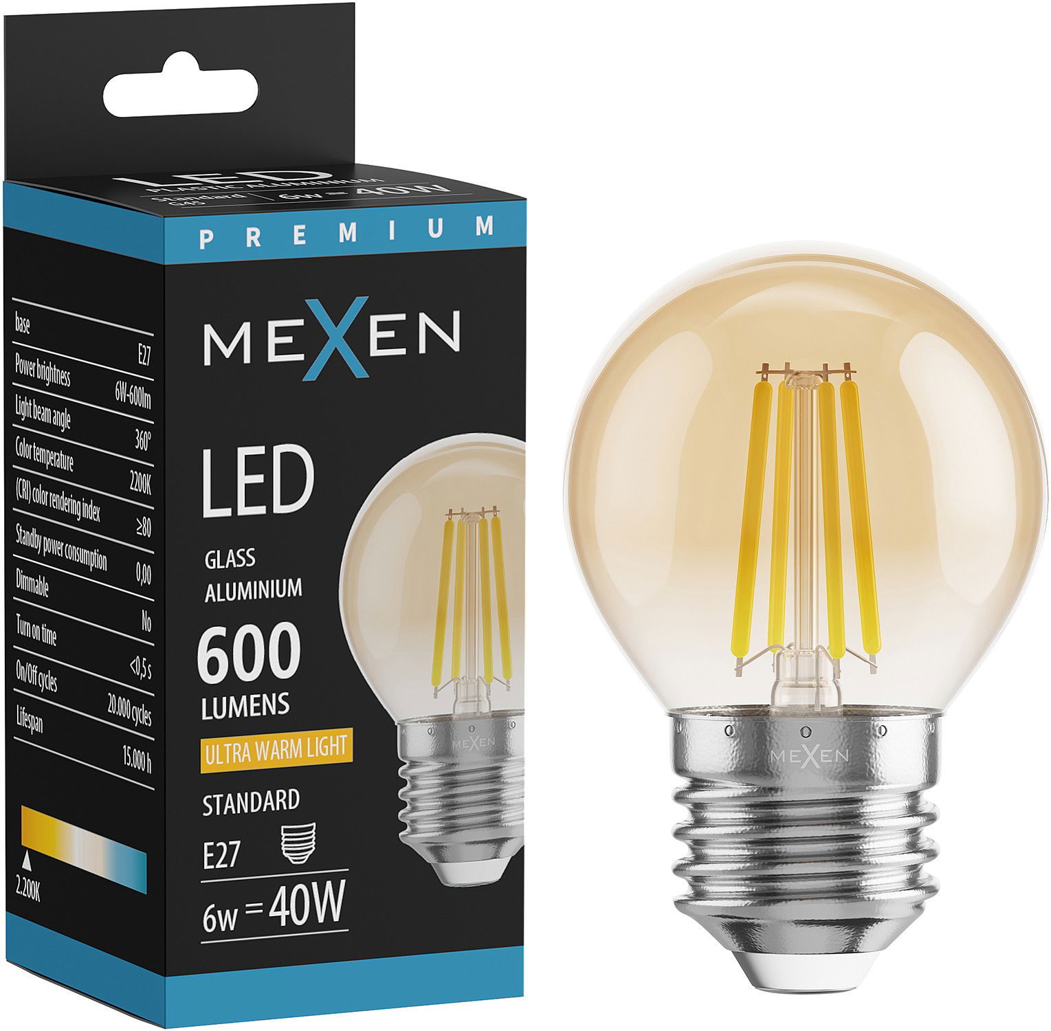 Mexen Vintis LED kvēlspuldze E27, G45, 6W, Silta - 2200K, 600 lm, dzintara - L156-E27-0622-50