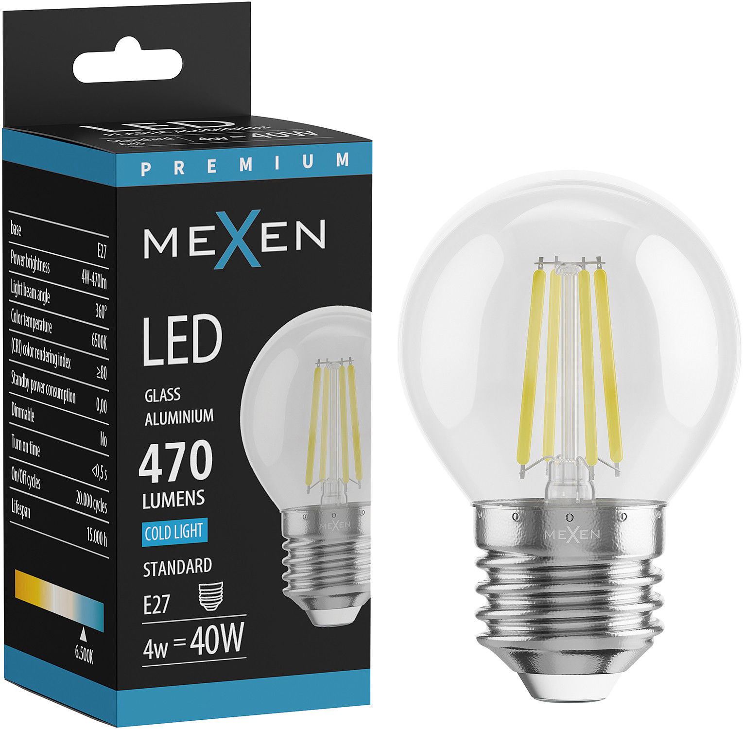 Mexen Vintis LED spuldze ar kvēldiegu E27, G45, 4W, Auksta - 6500K, 470 lm, caurspīdīga - L156-E27-0465-00