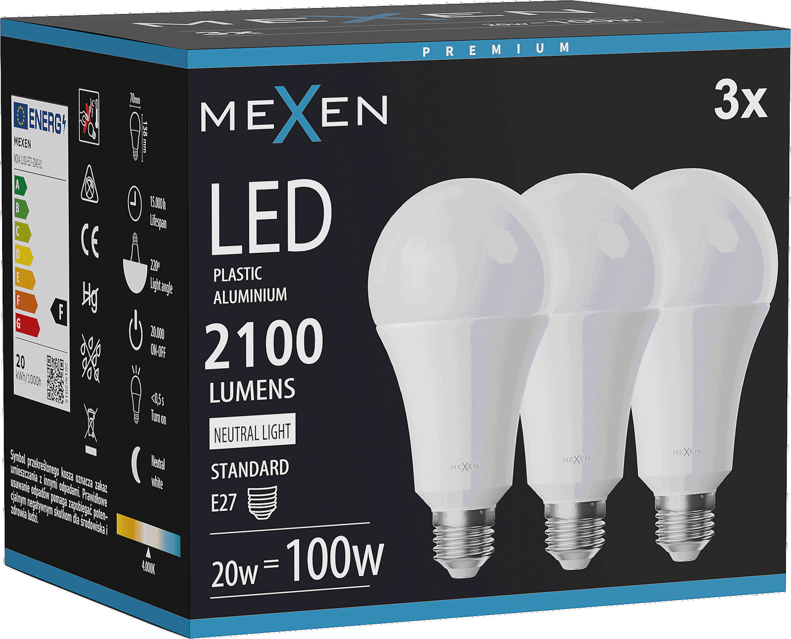 Mexen Nova 3x LED spuldze E27, A70, 20W, Neitrāla - 4000K, 2100 lm - L100-E27-2040-01x03