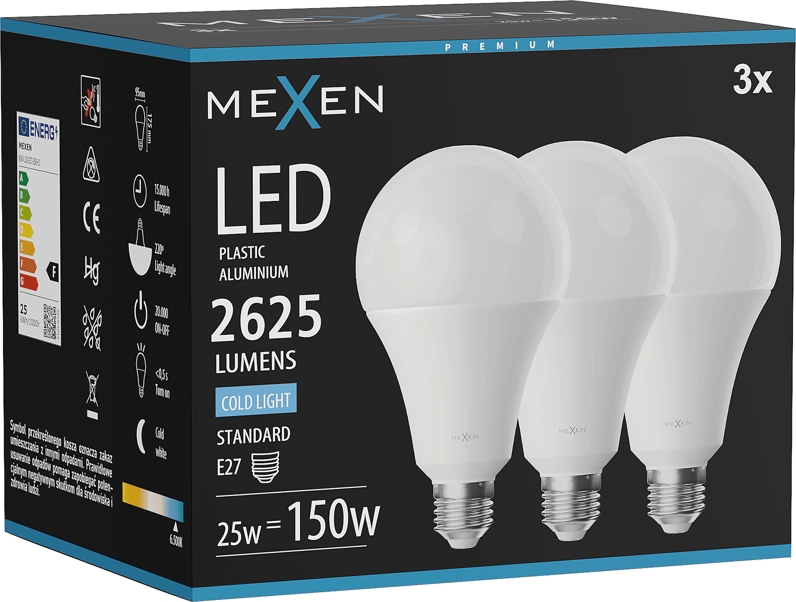 Mexen Nova 3x LED spuldze E27, A95, 25W, Aukstā - 6500K, 2625 lm - L100-E27-2565-01x03