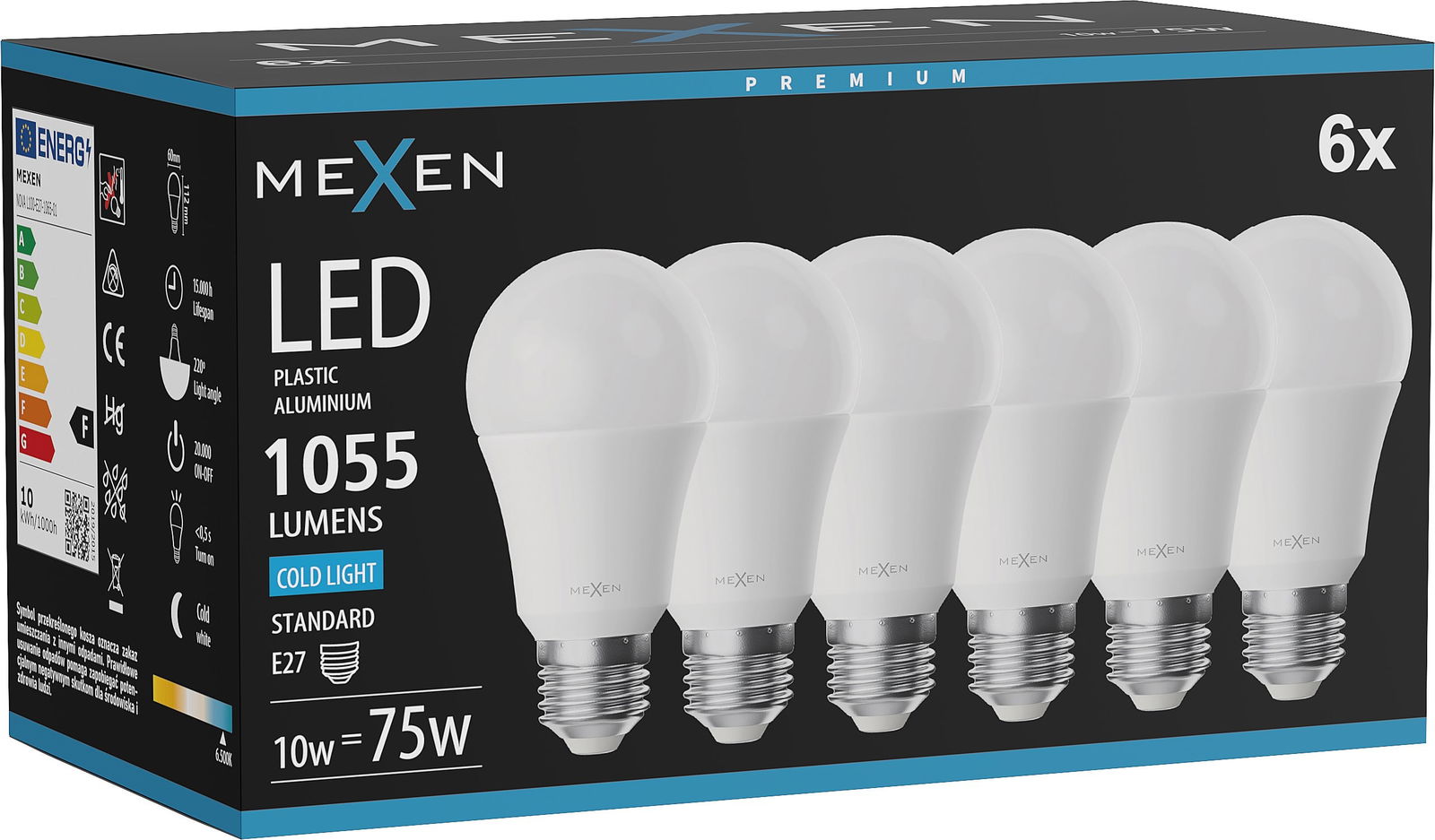 Mexen Nova 6x LED spuldze E27, A60, 10W, Auksts - 6500K, 1055 lm - L100-E27-1065-01x06