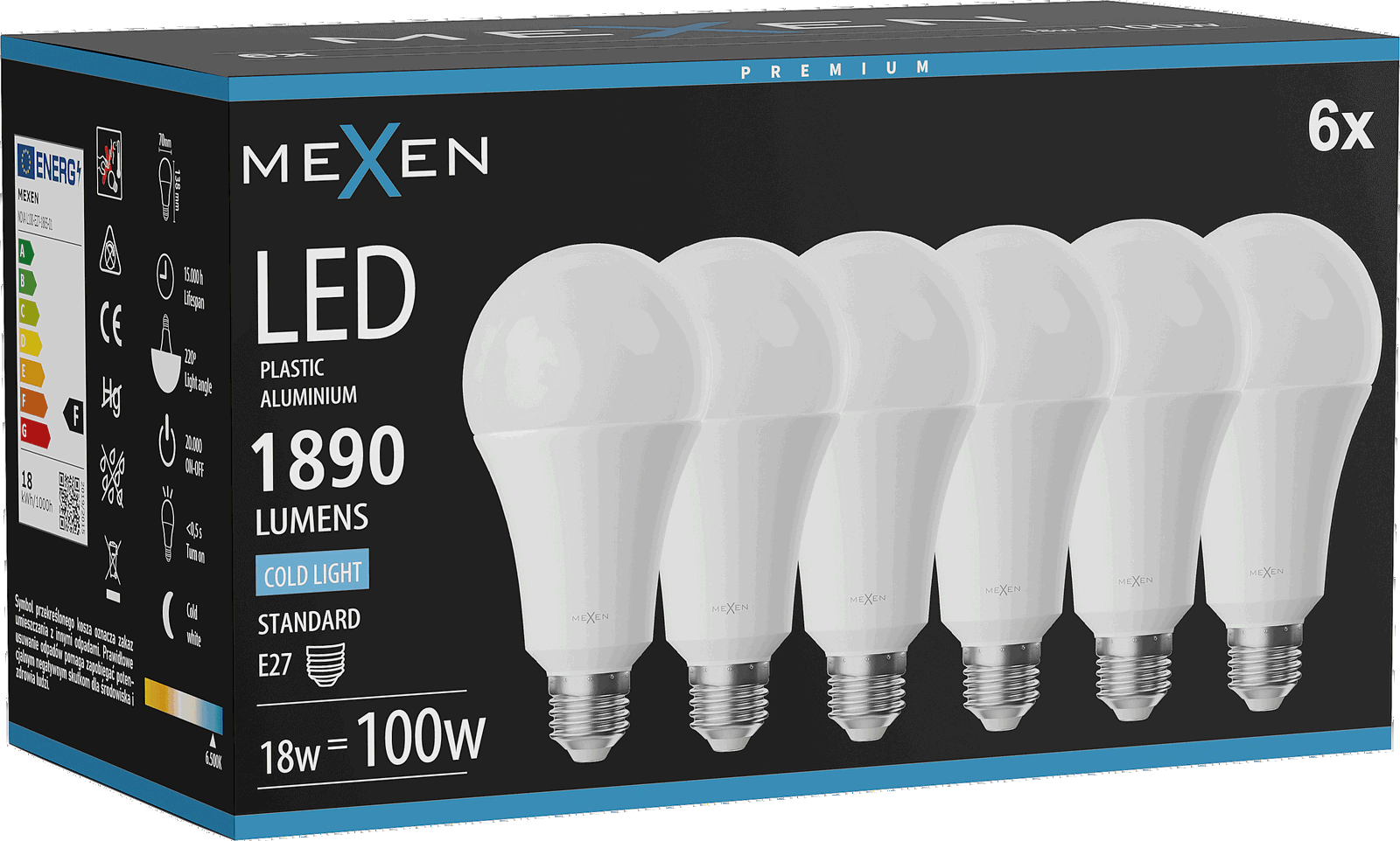 Mexen Nova 6x LED spuldze E27, A70, 18W, Aukstā - 6500K, 1890 lm - L100-E27-1865-01x06