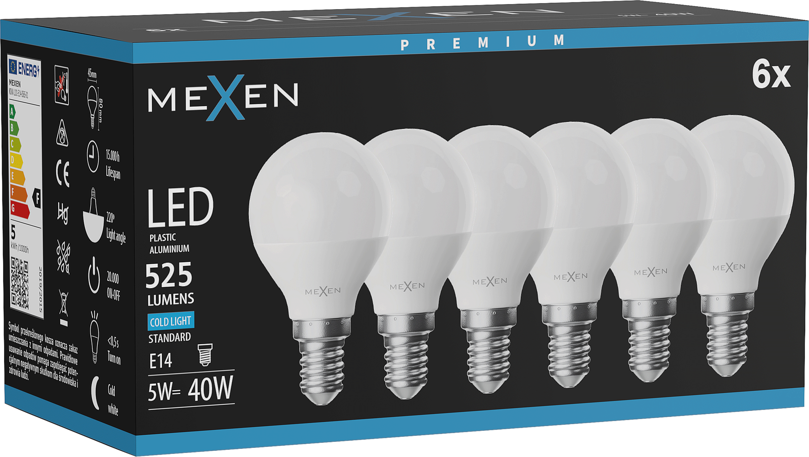 Mexen Nova 6x LED spuldze E14, G45, 5W, Auksts - 6500K, 525 lm - L101-E14-0565-01x06