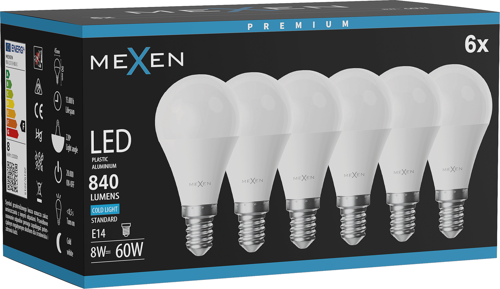 Mexen Nova 6x LED spuldze E14, G45, 8W, Auksts - 6500K, 840 lm - L101-E14-0865-01x06