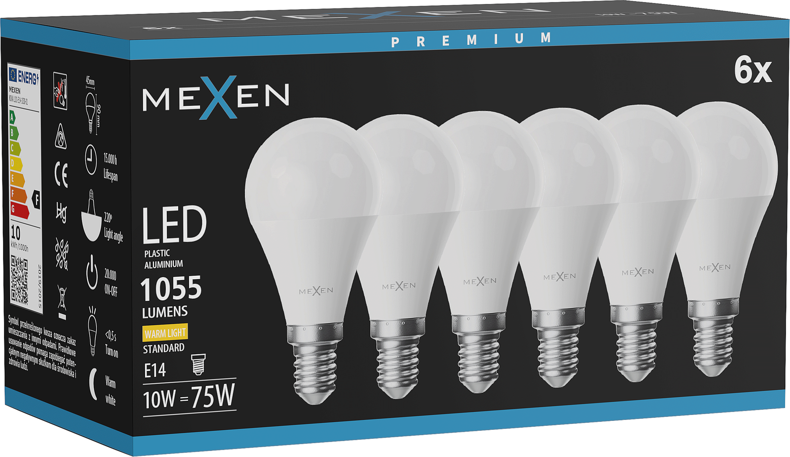 Mexen Nova 6x LED spuldze E14, G45, 10W, silti - 3000K, 1055 lm - L101-E14-1030-01x06
