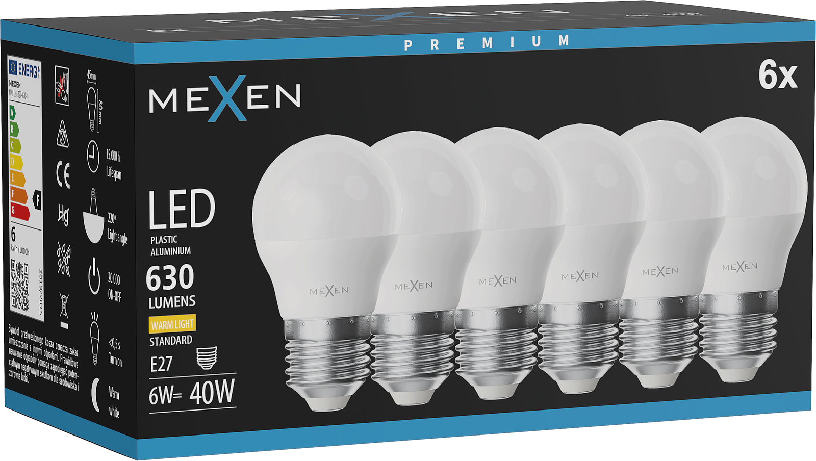 Mexen Nova 6x LED spuldze E27, G45, 6W, Silta - 3000K, 630 lm - L101-E27-0630-01x06
