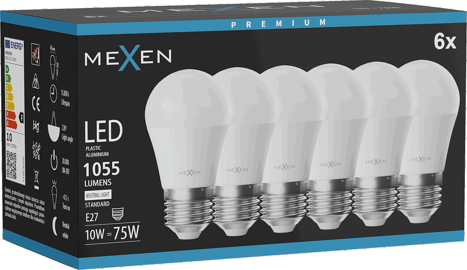 Mexen Nova 6x LED spuldze E27, G45, 10W, Neitrāla - 4000K, 1055 lm - L101-E27-1040-01x06