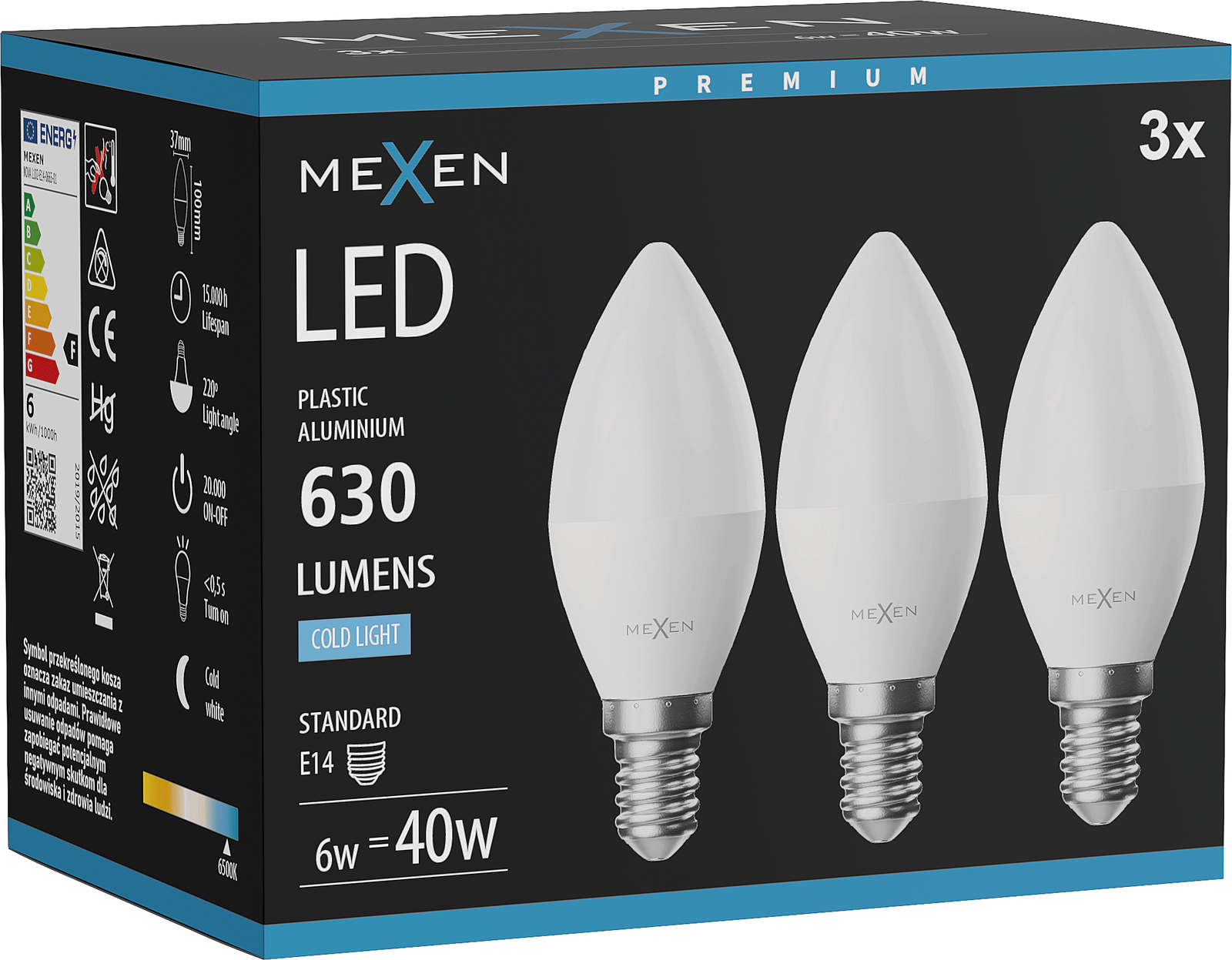 Mexen Nova 3x LED spuldze E14, C37, 6W, Auksts - 6500K, 630 lm - L102-E14-0665-01x03