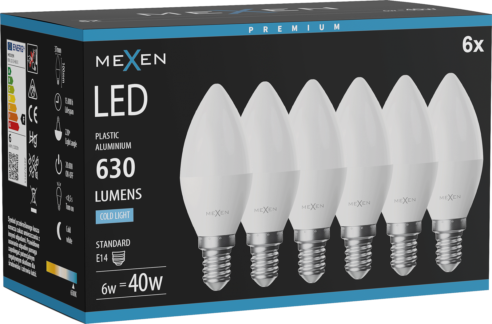 Mexen Nova 6x LED spuldze E14, C37, 6W, Auksts - 6500K, 630 lm - L102-E14-0665-01x06