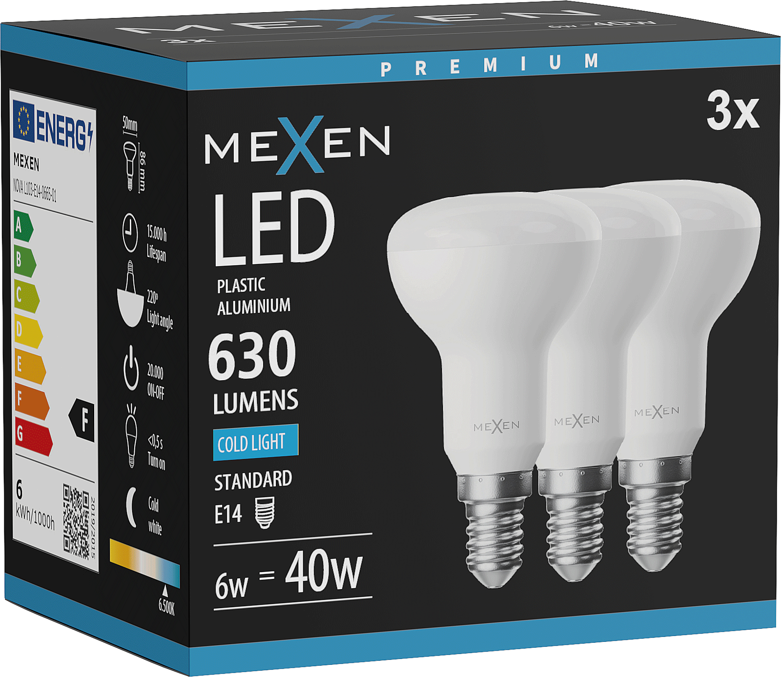 Mexen Nova 3x LED spuldze E14, R50, 6W, Auksta - 6500K, 630 lm - L103-E14-0665-01x03