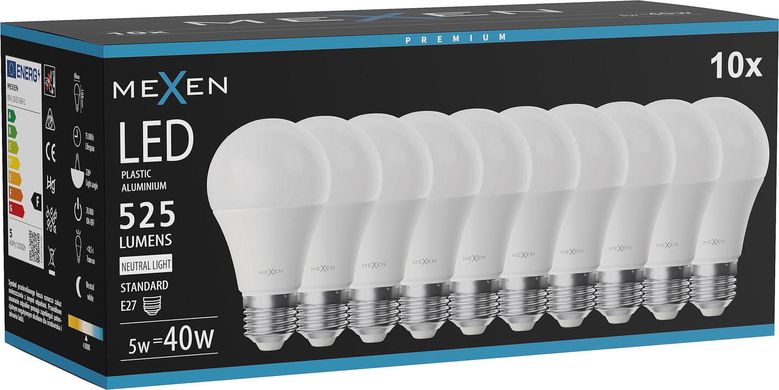 Mexen Nova 10x LED spuldze E27, A60, 5W, Neitrāla - 4000K, 525 lm - L100-E27-0540-01x10