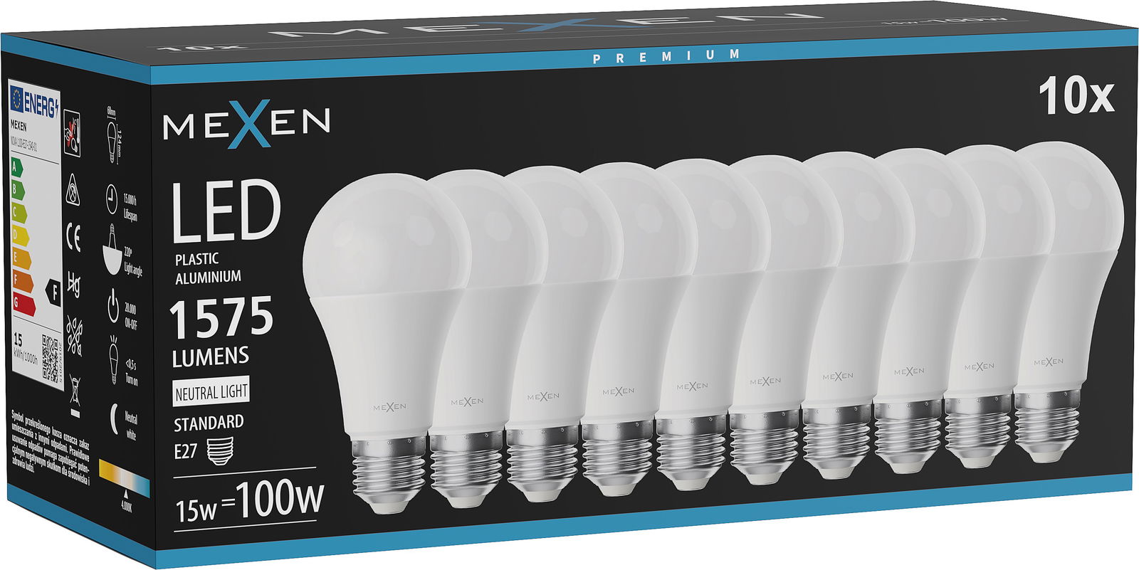 Mexen Nova 10x LED spuldze E27, A60, 15W, Neitrāla - 4000K, 1575 lm - L100-E27-1540-01x10