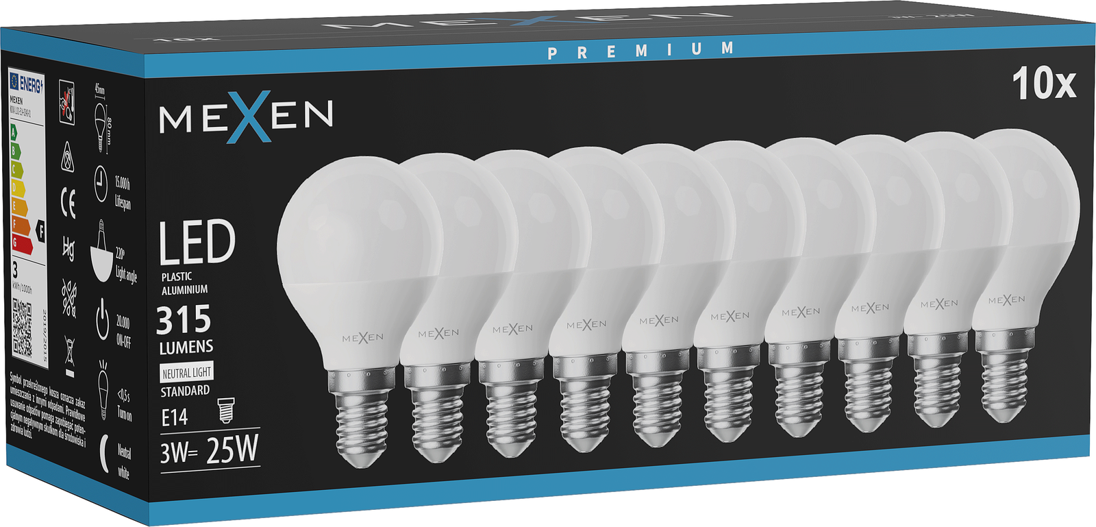 Mexen Nova 10x LED spuldze E14, G45, 3W, Neitrāla - 4000K, 315 lm - L101-E14-0340-01x10