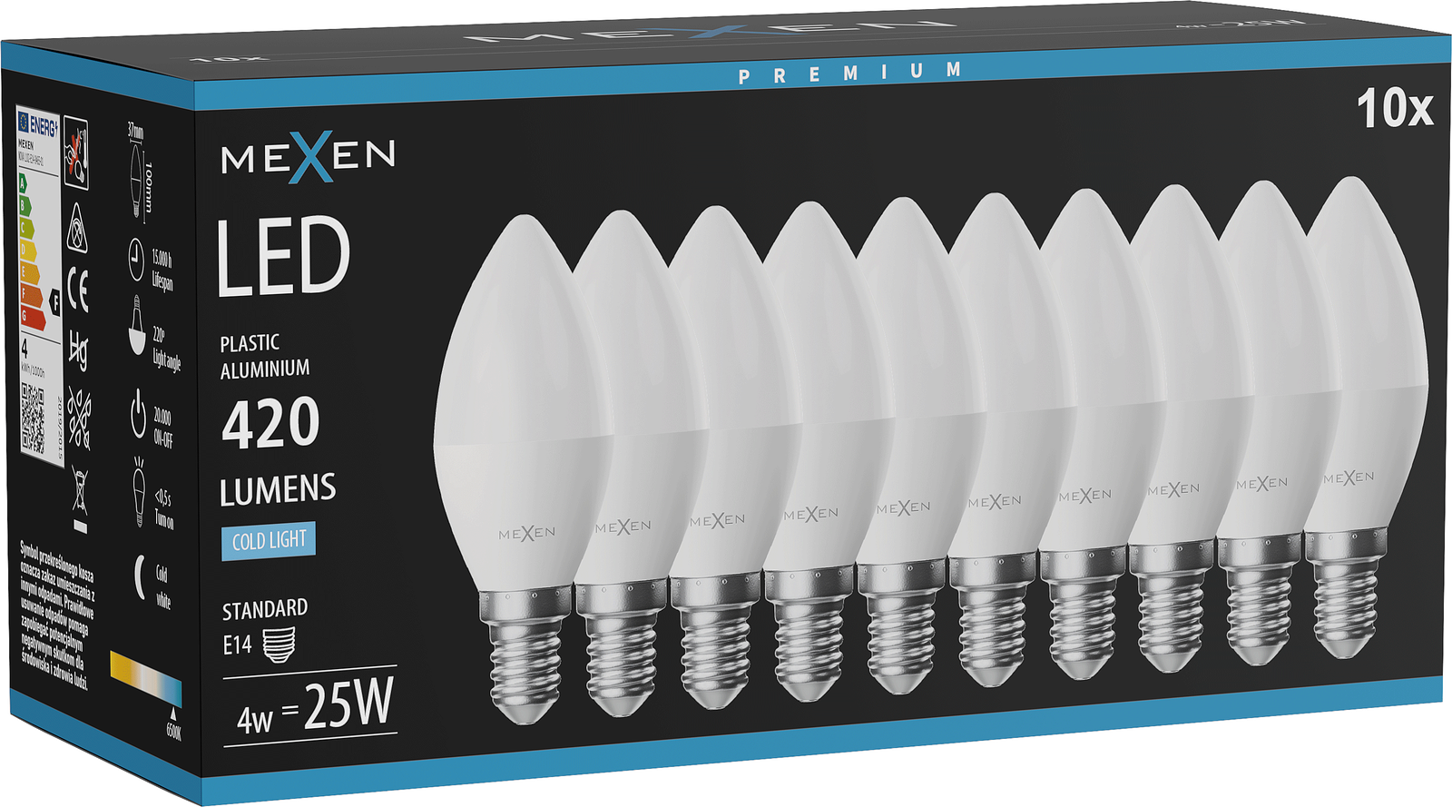 Mexen Nova 10x LED spuldze E14, C37, 4W, Auksts - 6500K, 420 lm - L102-E14-0465-01x10