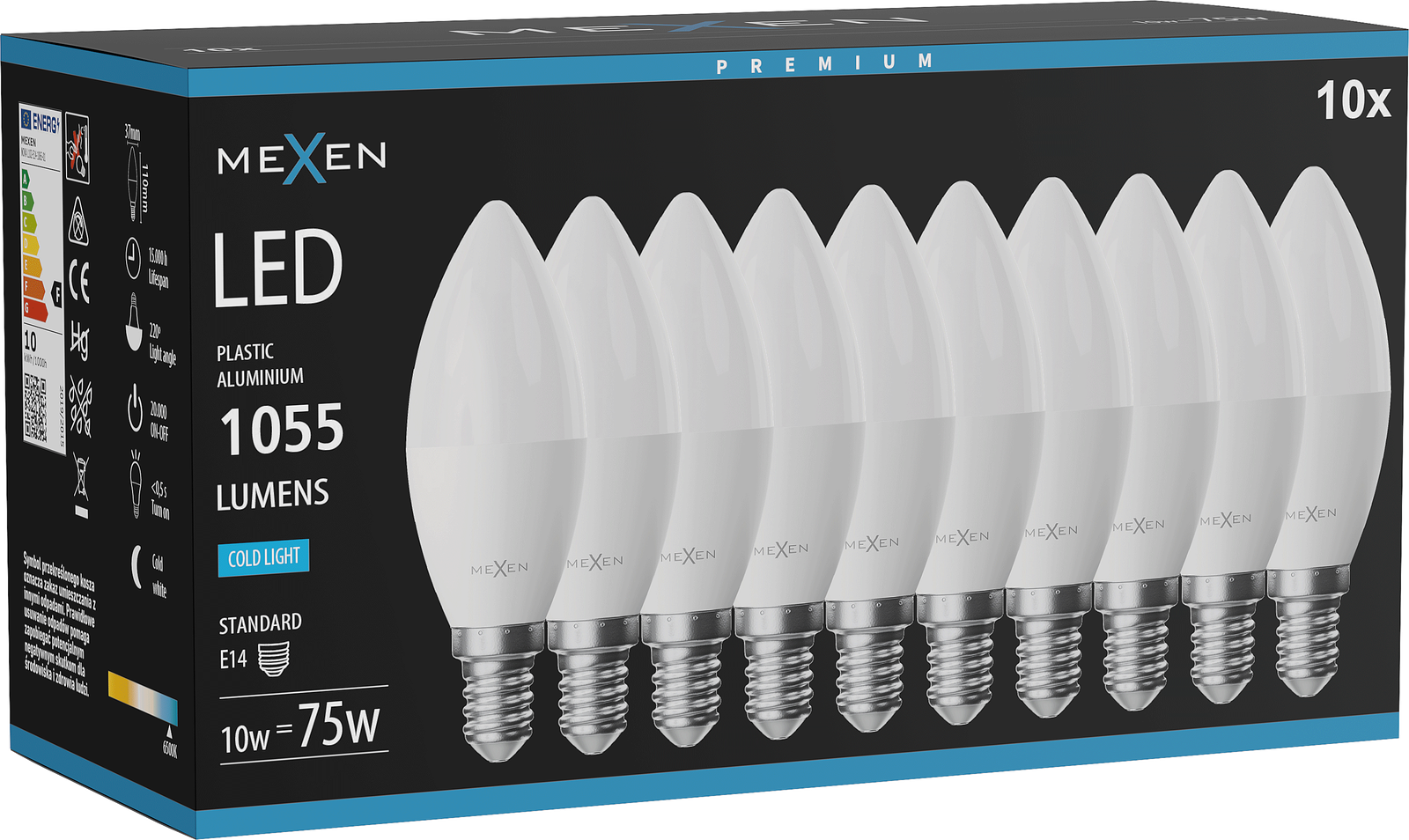 Mexen Nova 10x LED spuldze E14, C37, 10W, Auksts - 6500K, 1055 lm - L102-E14-1065-01x10