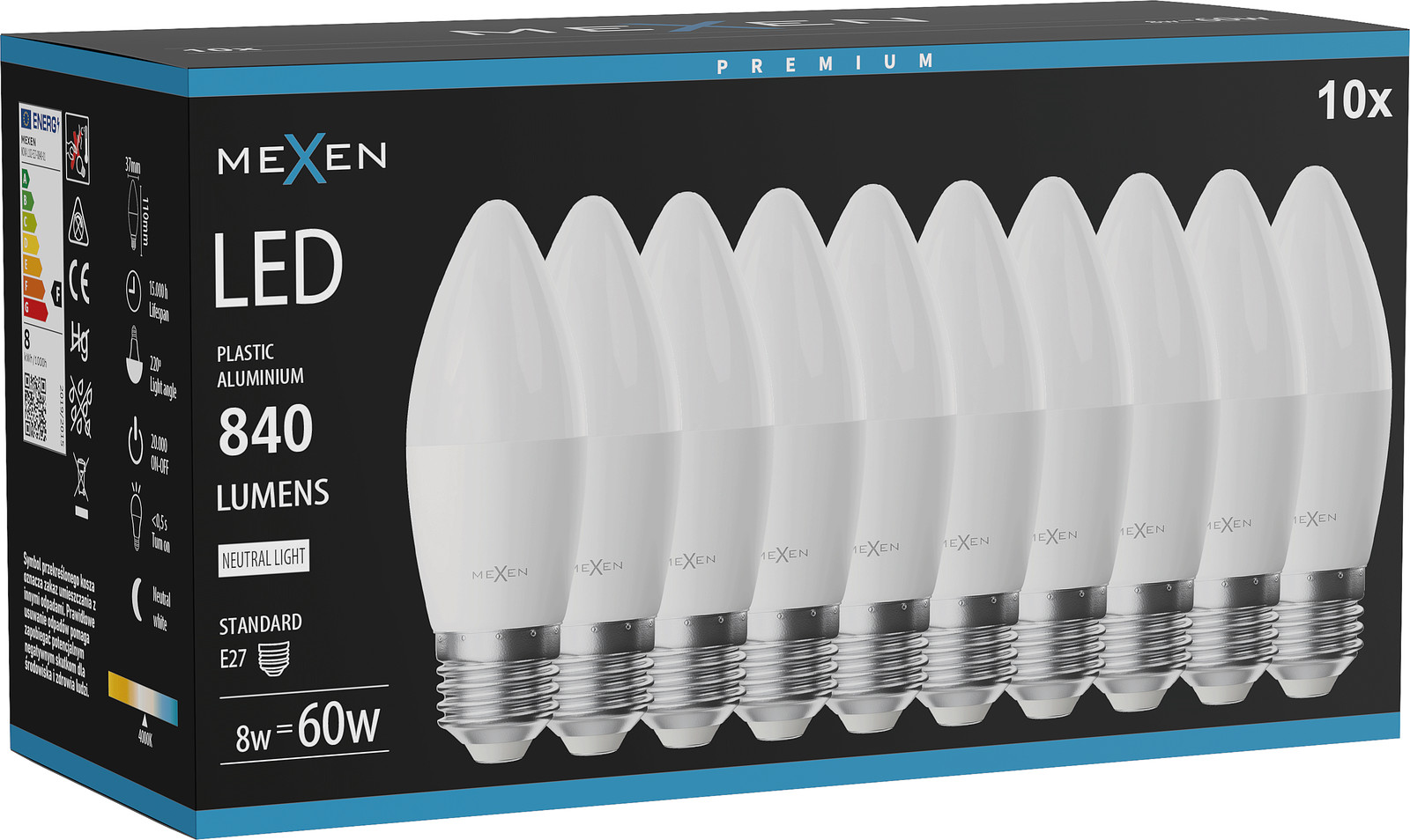 Mexen Nova 10x LED spuldze E27, C37, 8W, Neitrāla - 4000K, 840 lm - L102-E27-0840-01x10