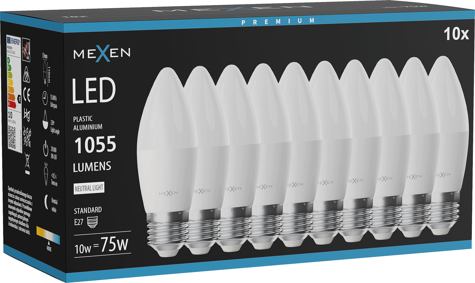 Mexen Nova 10x LED spuldze E27, C37, 10W, Neitrāla - 4000K, 1055 lm - L102-E27-1040-01x10