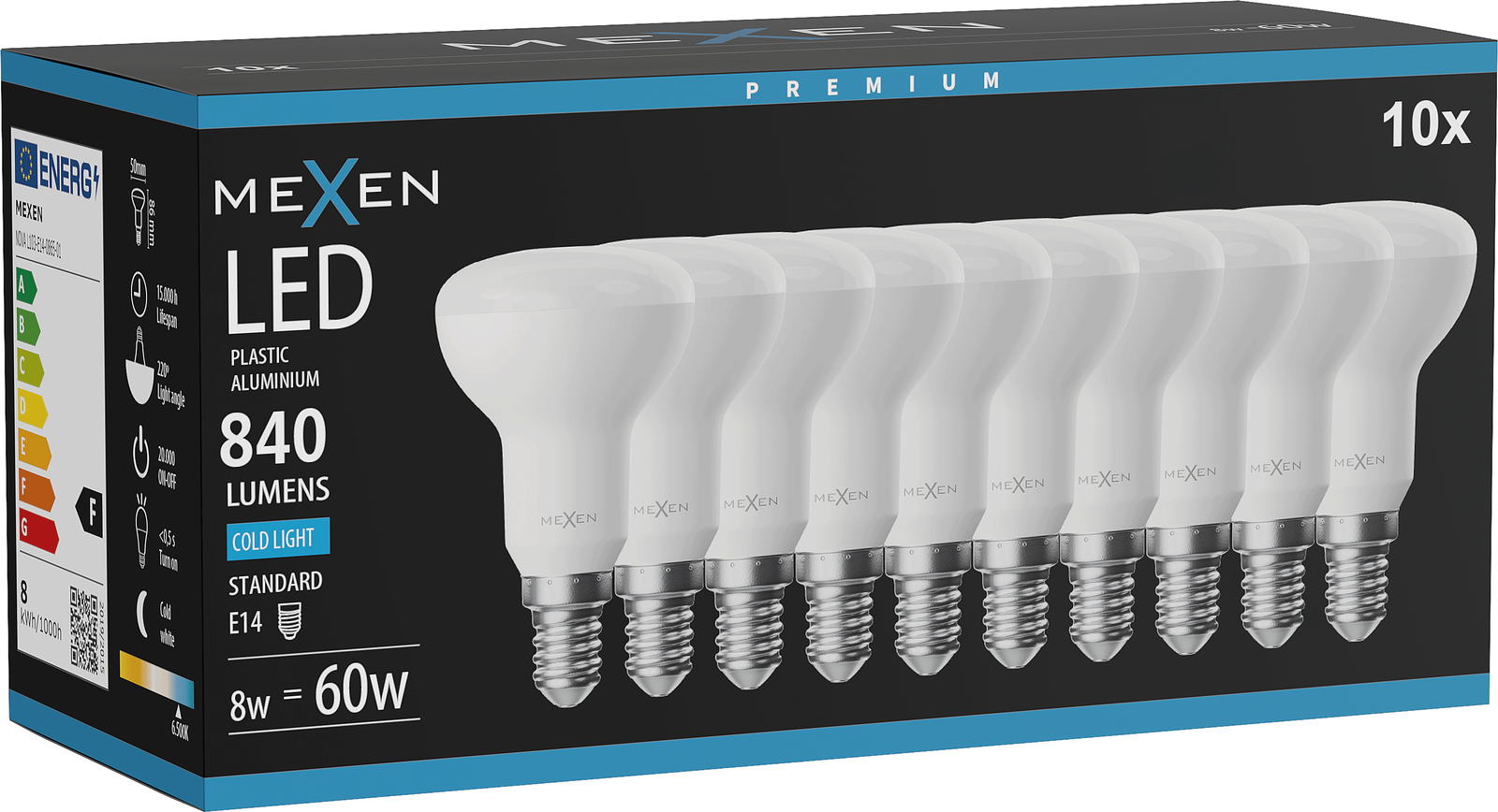 Mexen Nova 10x LED spuldze E14, R50, 8W, Auksts - 6500K, 840 lm - L103-E14-0865-01x10