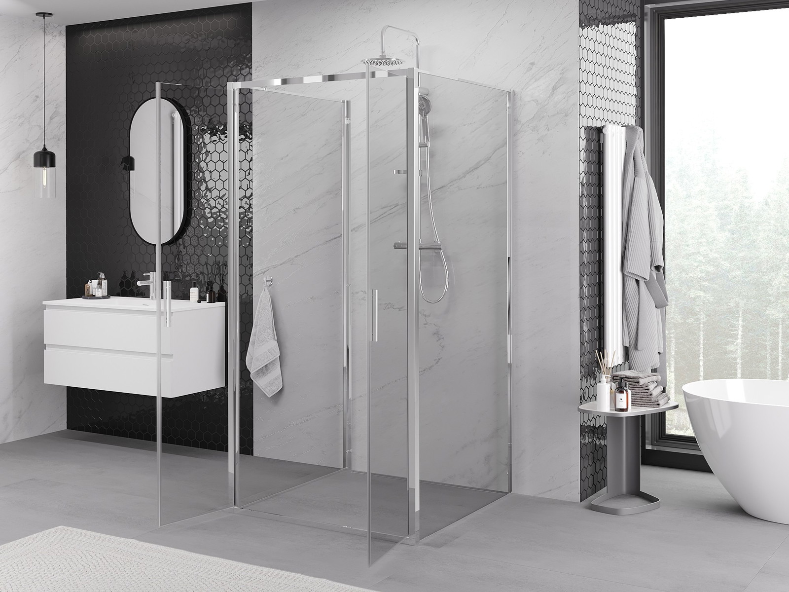Pateicoties universālās stiprinājumu sistēmas izmantošanai, dušas durvis var tikt uzstādītas no labās vai kreisās puses atkarībā no vajadzībām. Tādejādi vari viegli izplānot dušu, kas pielāgota vannas istabas telpai.